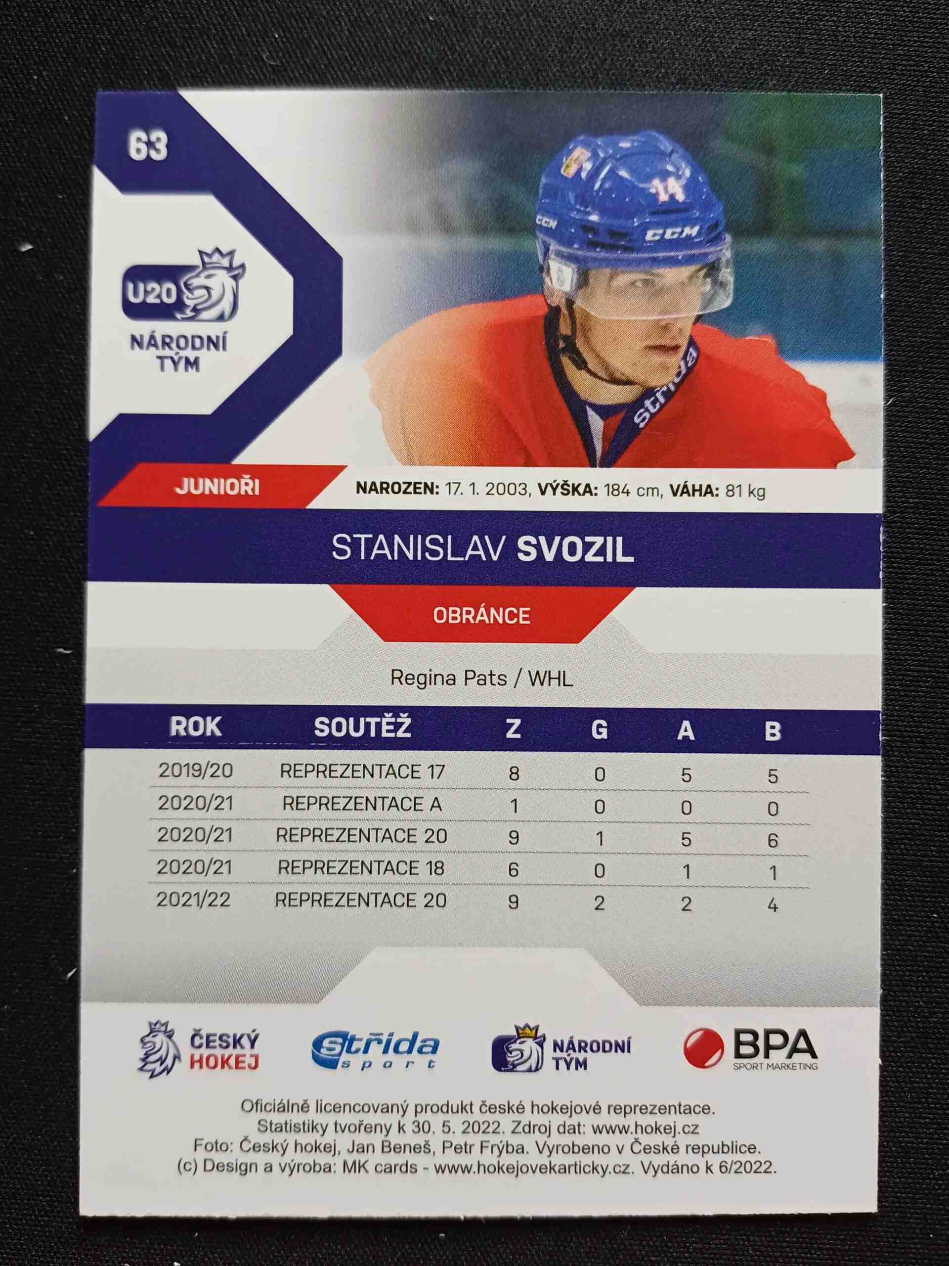 Sběratelská karta 2021/2022 Moje Kartičky Reprezentace Universe Level 1 63 Stanislav Svozil Paralel /88