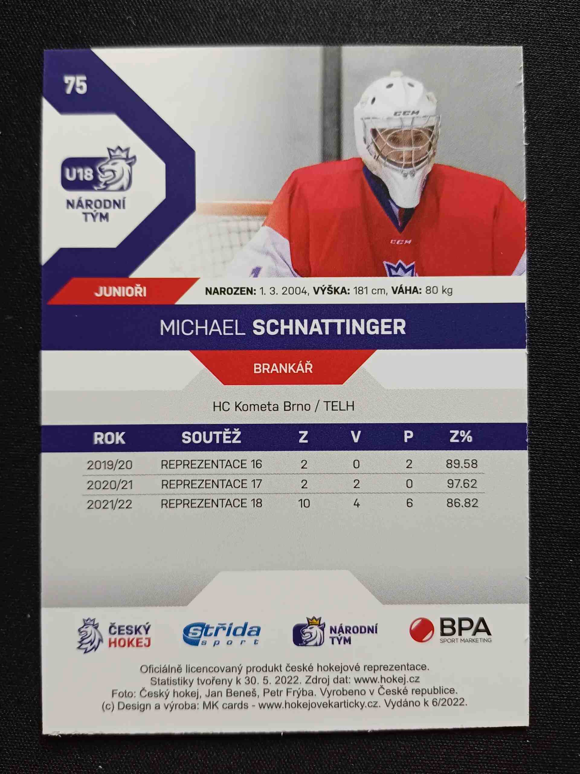 Sběratelská karta 2021/2022 Moje Kartičky Reprezentace Universe Level 2 75 Michael Schnattinger Paralel /46