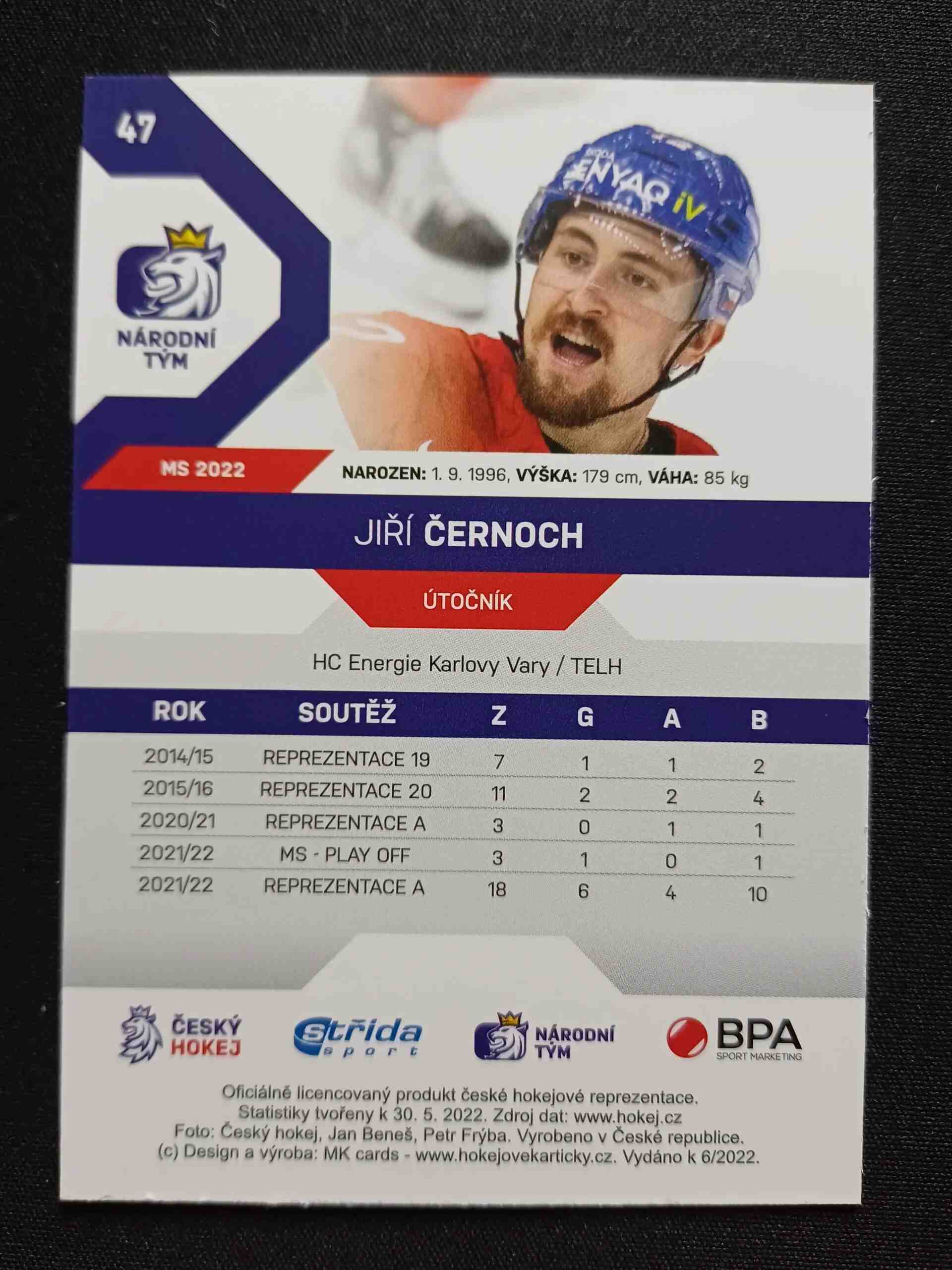 Sběratelská karta 2021/2022 Moje Kartičky Reprezentace Universe Level 3 47 Jiří Černoch Paralel 08/17