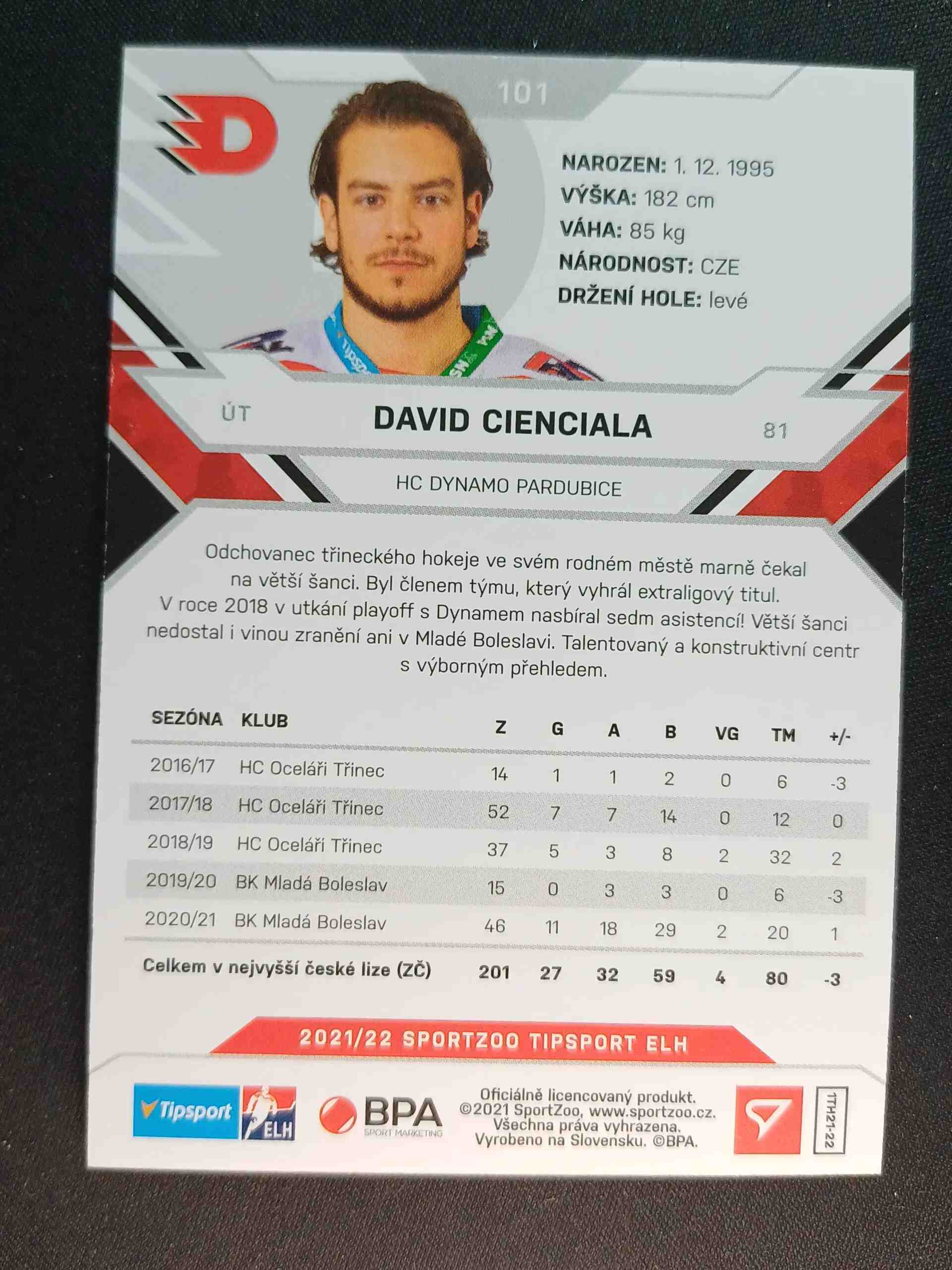 Sběratelská karta 2021/2022 Sportzoo Serie 1 Base 101 David Cienciala