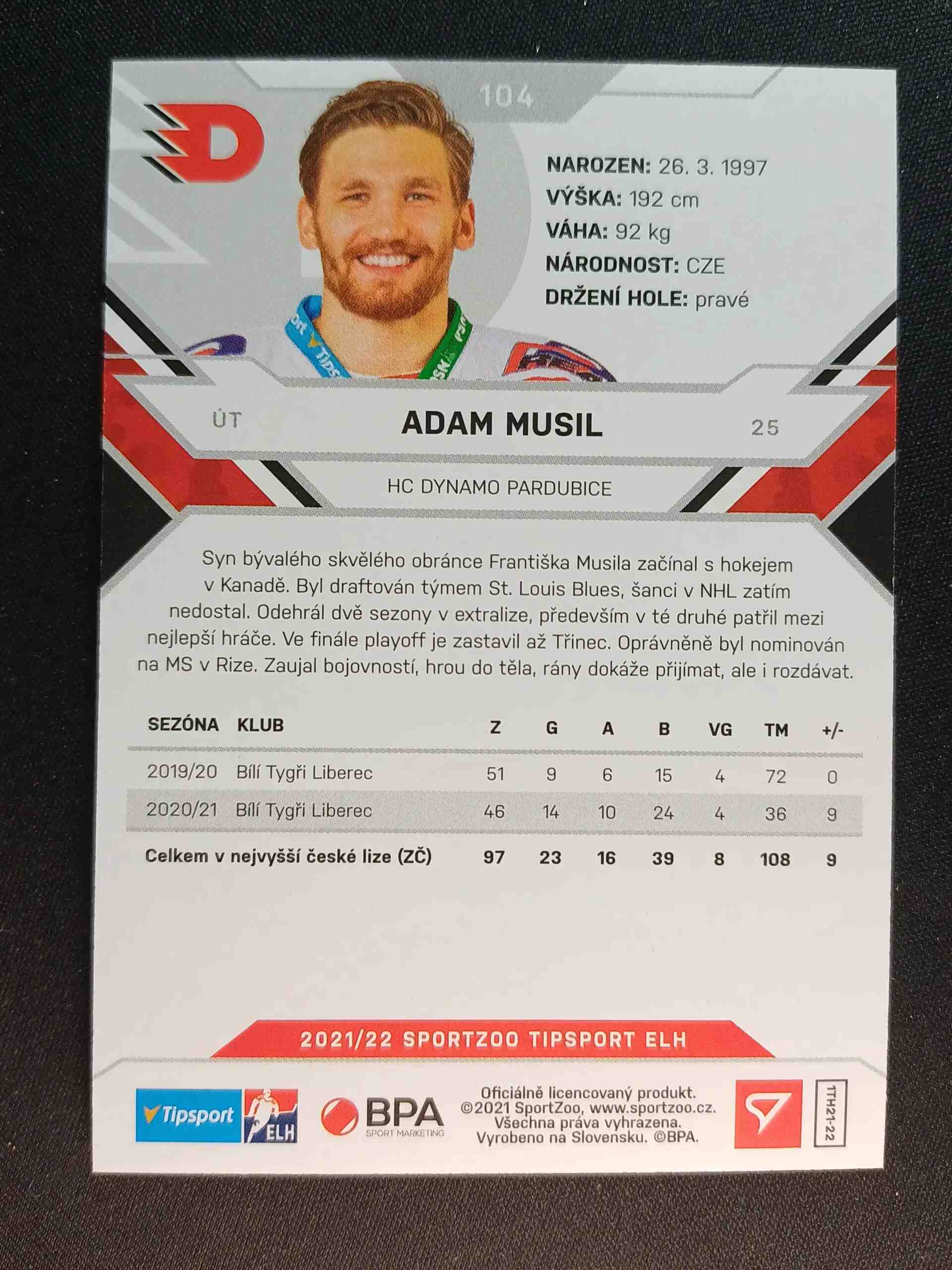 Sběratelská karta 2021/2022 Sportzoo Serie 1 Base 104 Adam Musil