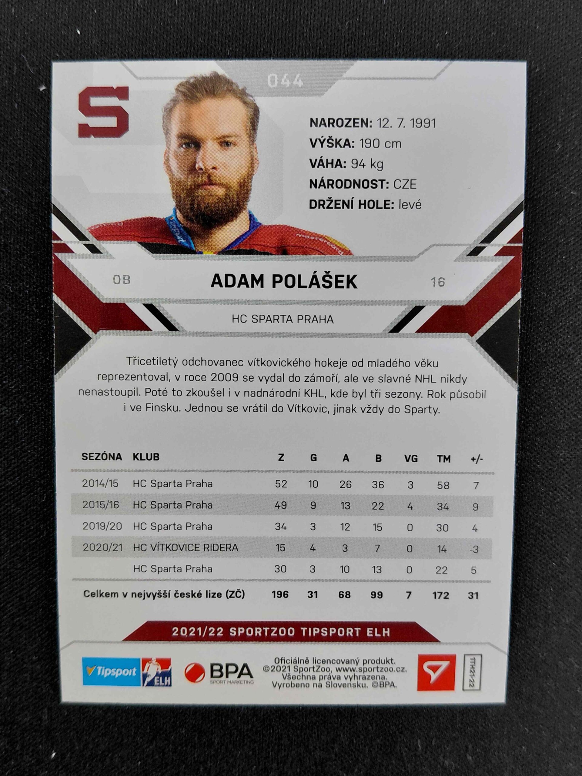 Sběratelská karta 2021/2022 Sportzoo Serie 1 Base 44 Adam Polášek