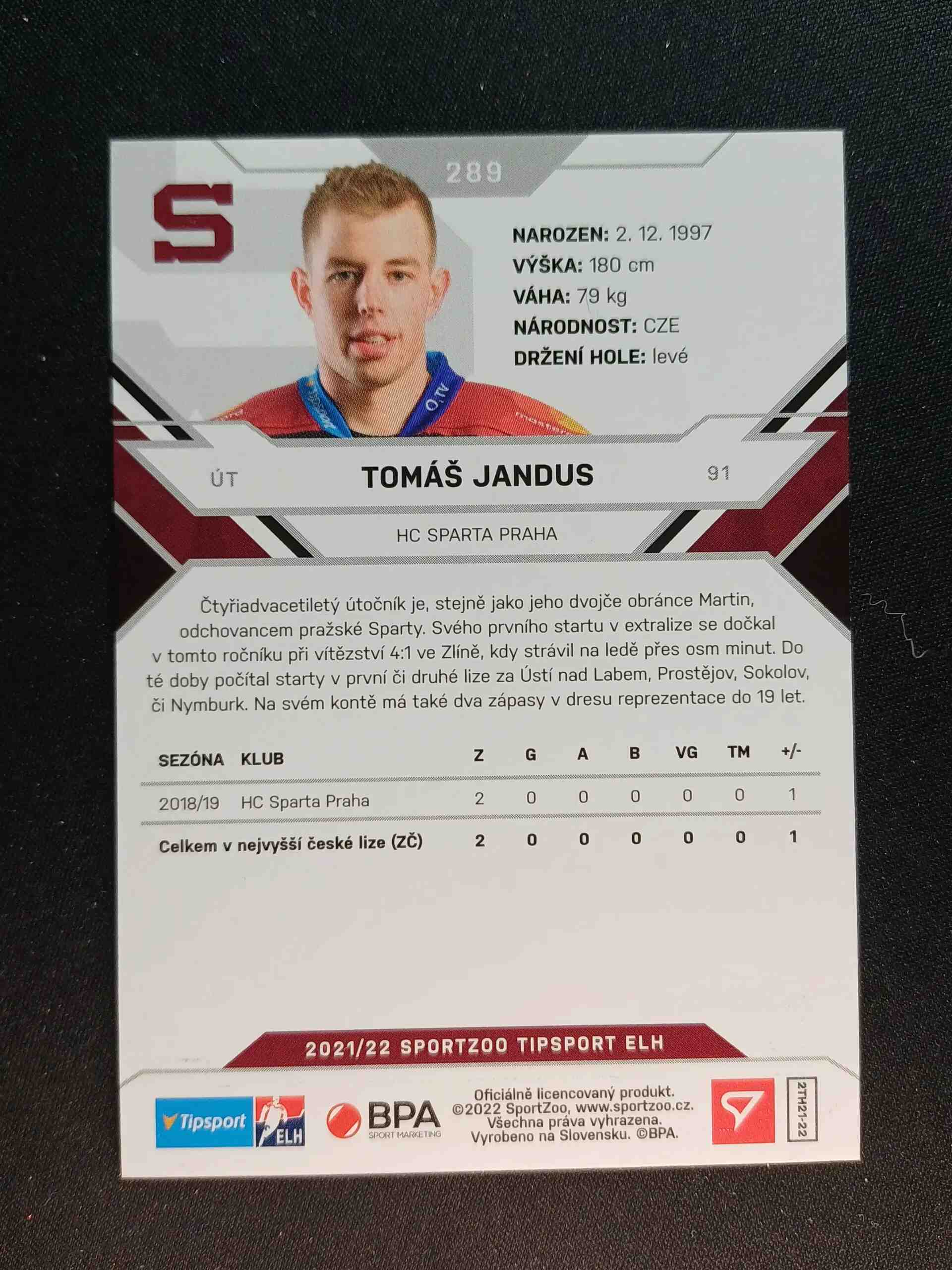 Sběratelská karta 2021/2022 Sportzoo Serie 2 Base 289 Tomáš Jandus