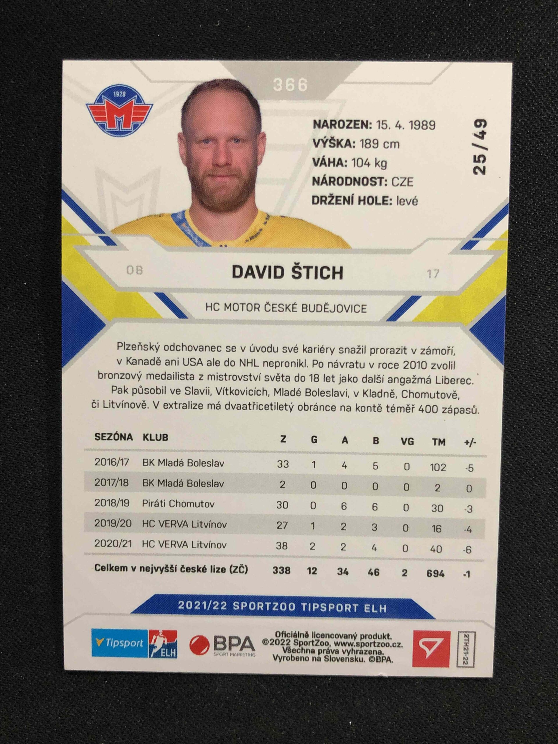 Sběratelská karta 2021/2022 Sportzoo Serie 2 Red 366 David Štich Paralel 25/49