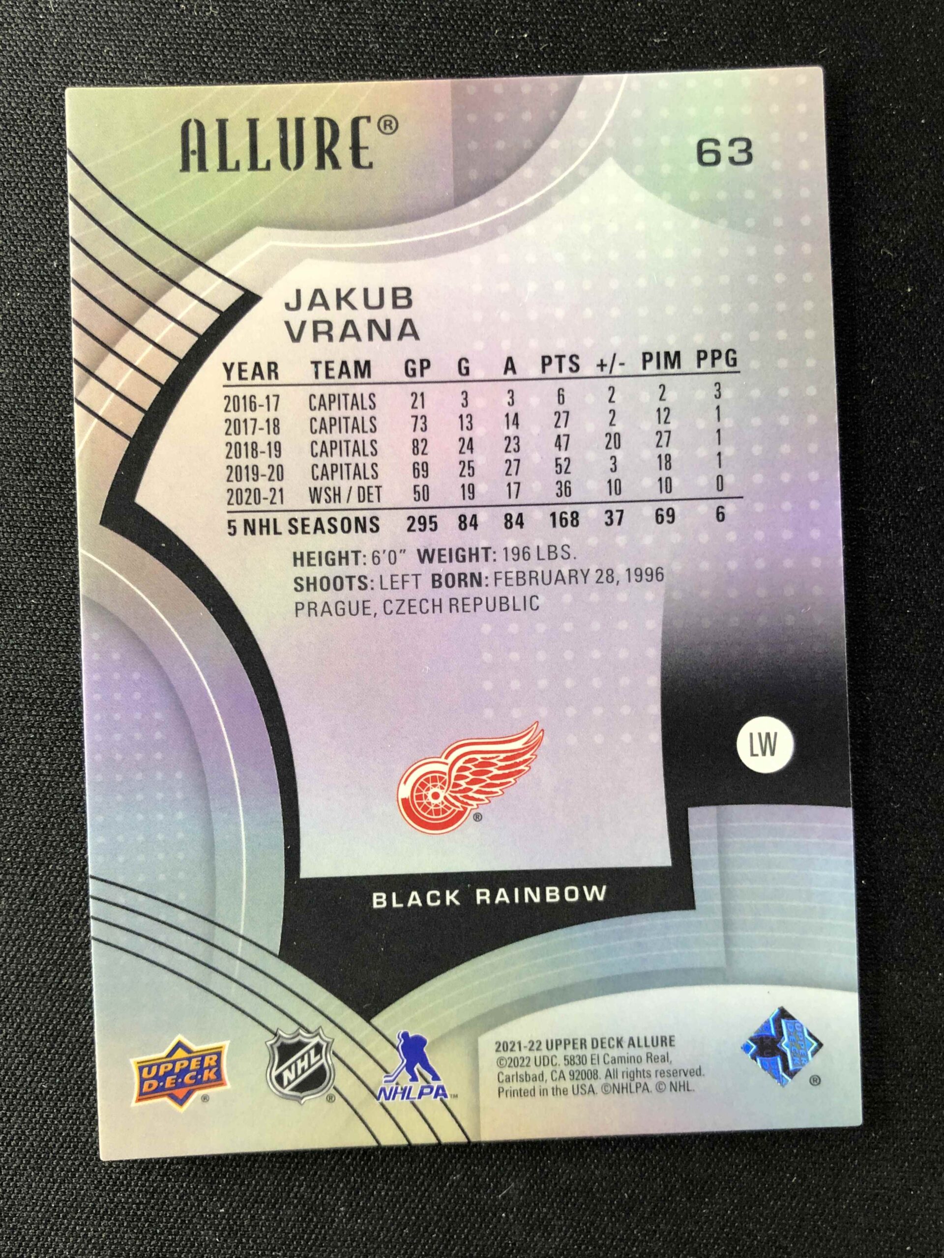 Sběratelská karta 2021/2022 Upper Deck Allure Black Rainbow 63 Jakub Vrana Paralel
