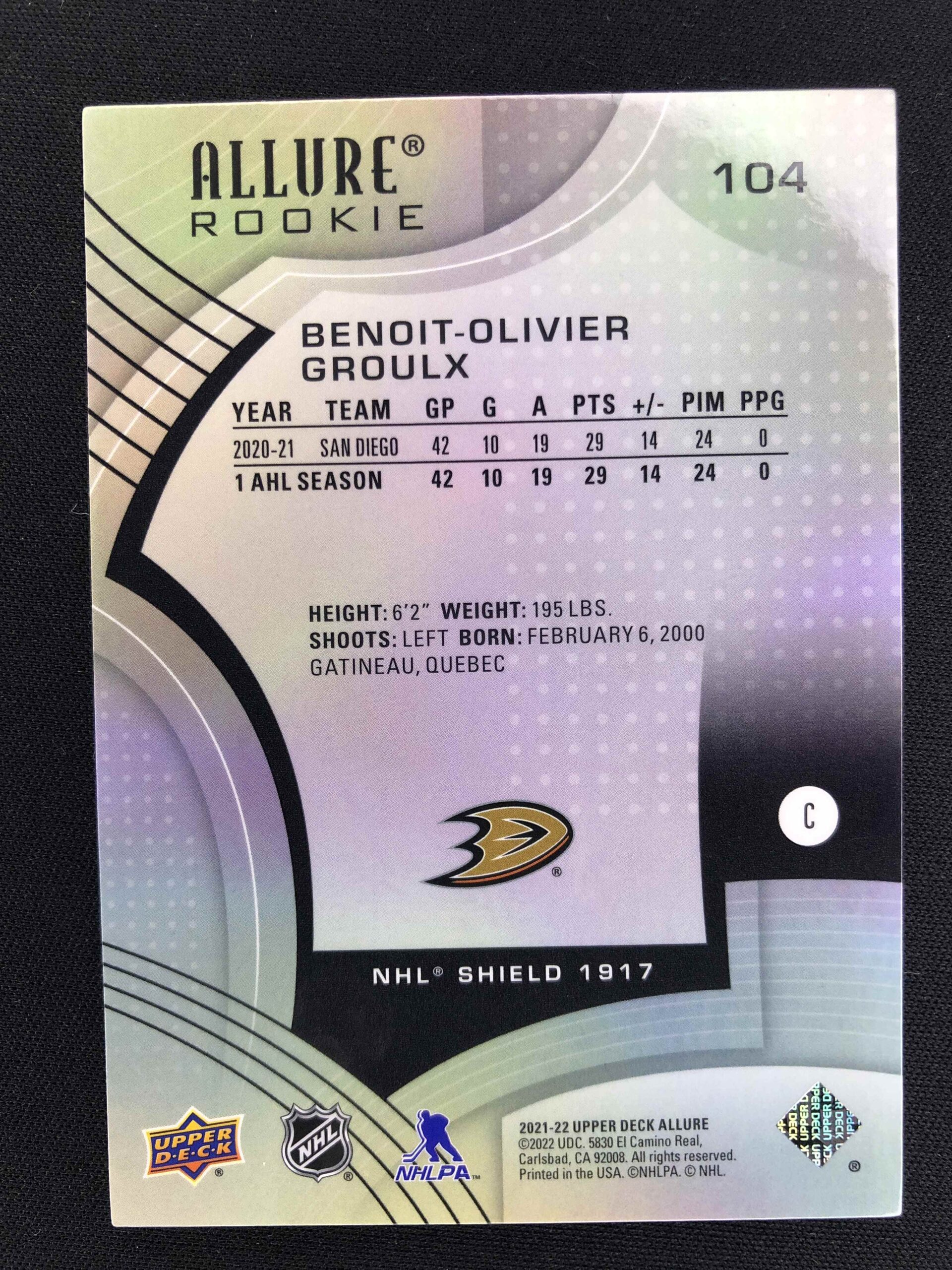 Sběratelská karta 2021/2022 Upper Deck Allure NHL Shield 1917 104 Benoit-Olivier Groulx Paralel