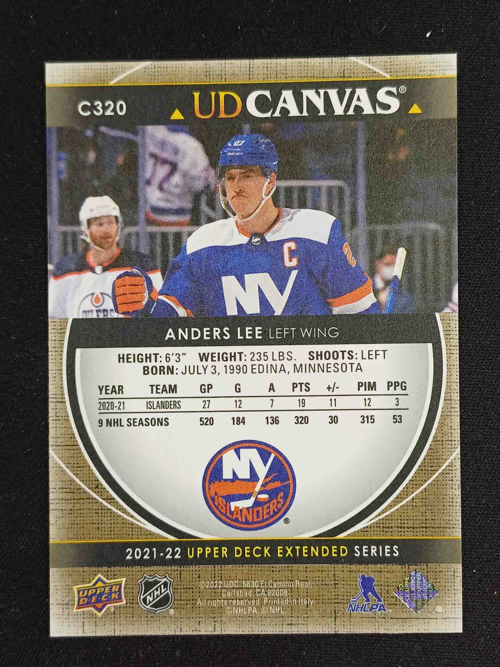 Sběratelská karta 2021/2022 Upper Deck Extended Canvas C320 Anders Lee Inzert