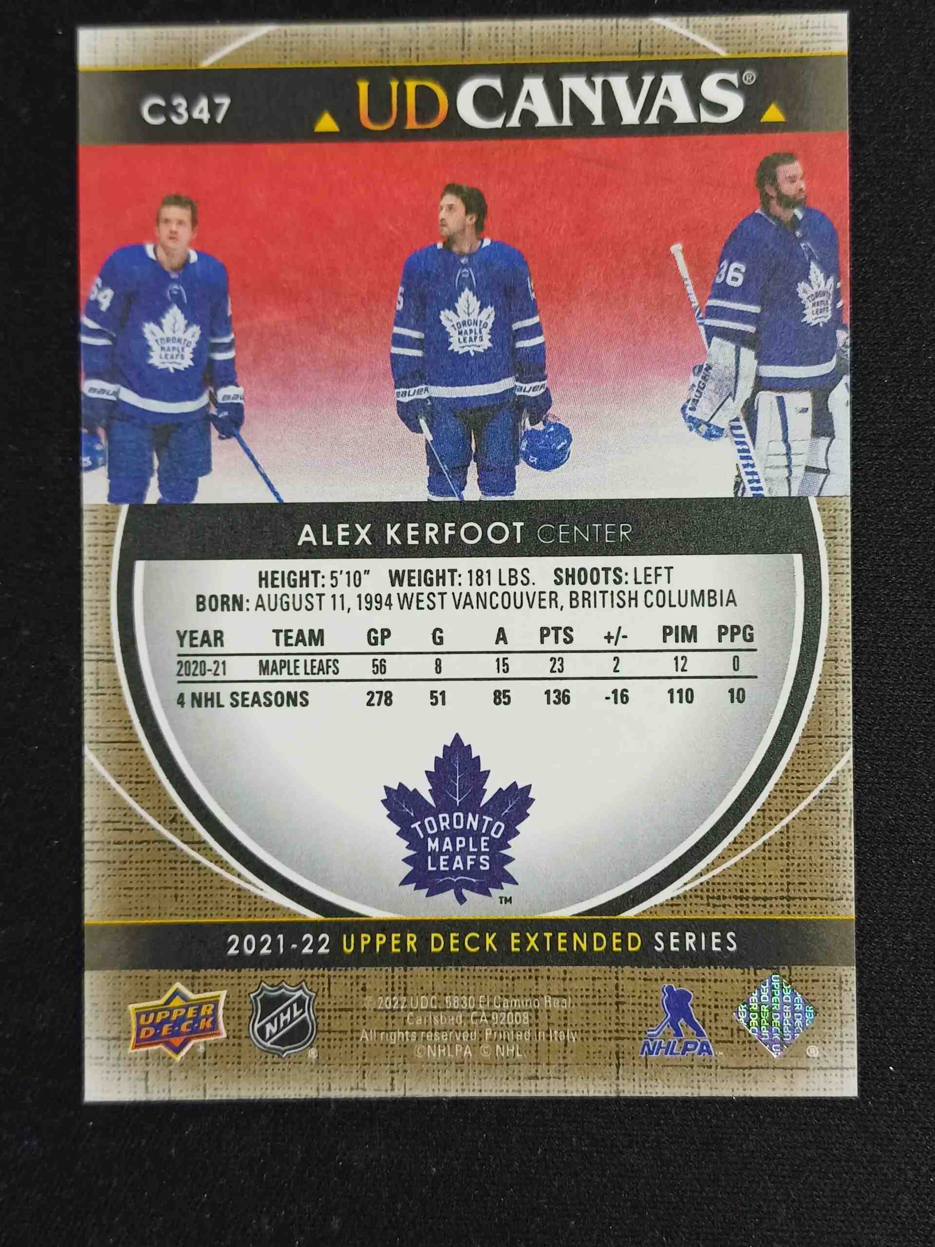 Sběratelská karta 2021/2022 Upper Deck Extended Canvas C347 Alex Kerfoot Inzert