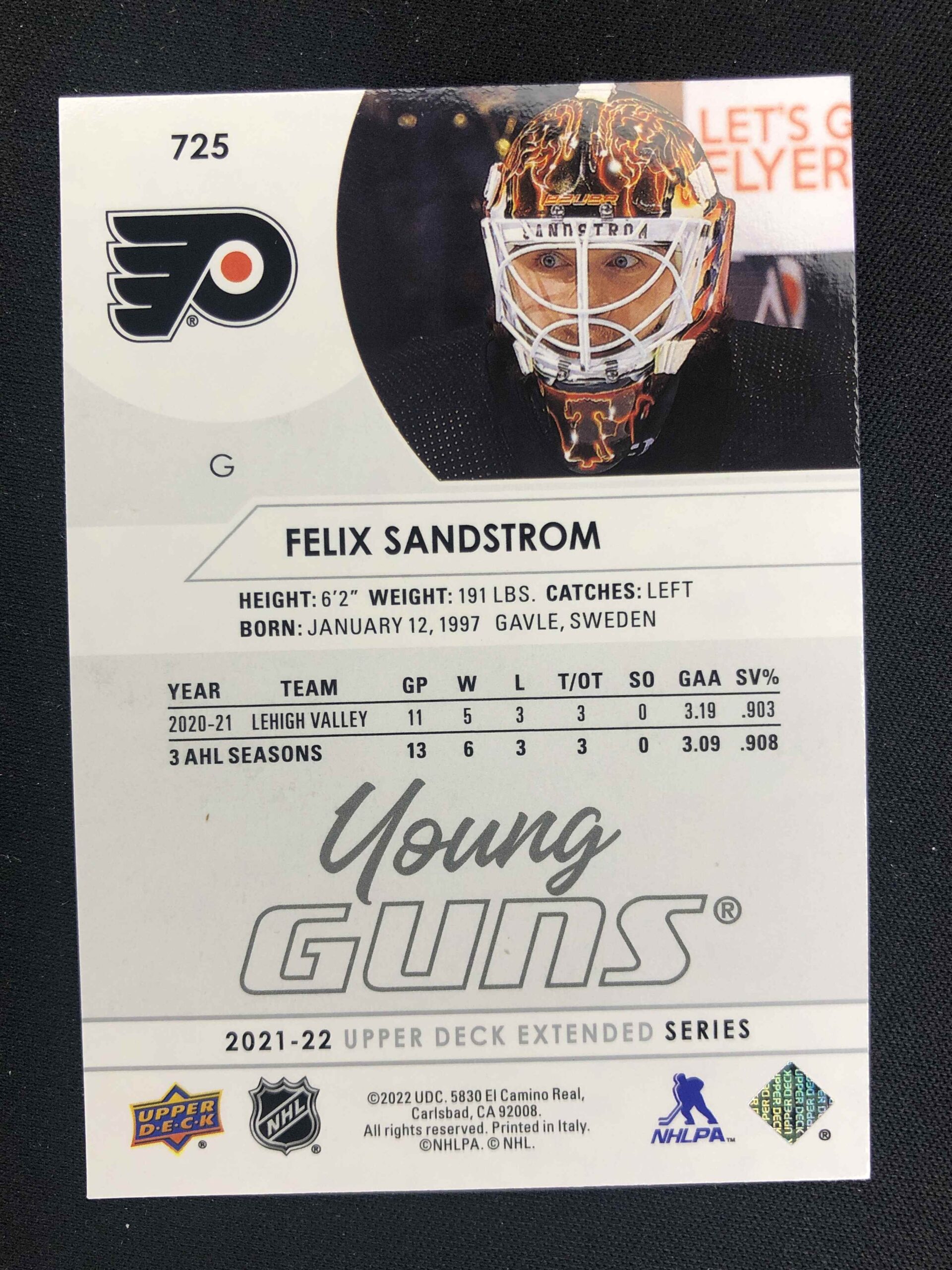 Sběratelská karta 2021/2022 Upper Deck Extended Young Guns 725 Felix Sandstrom Inzert