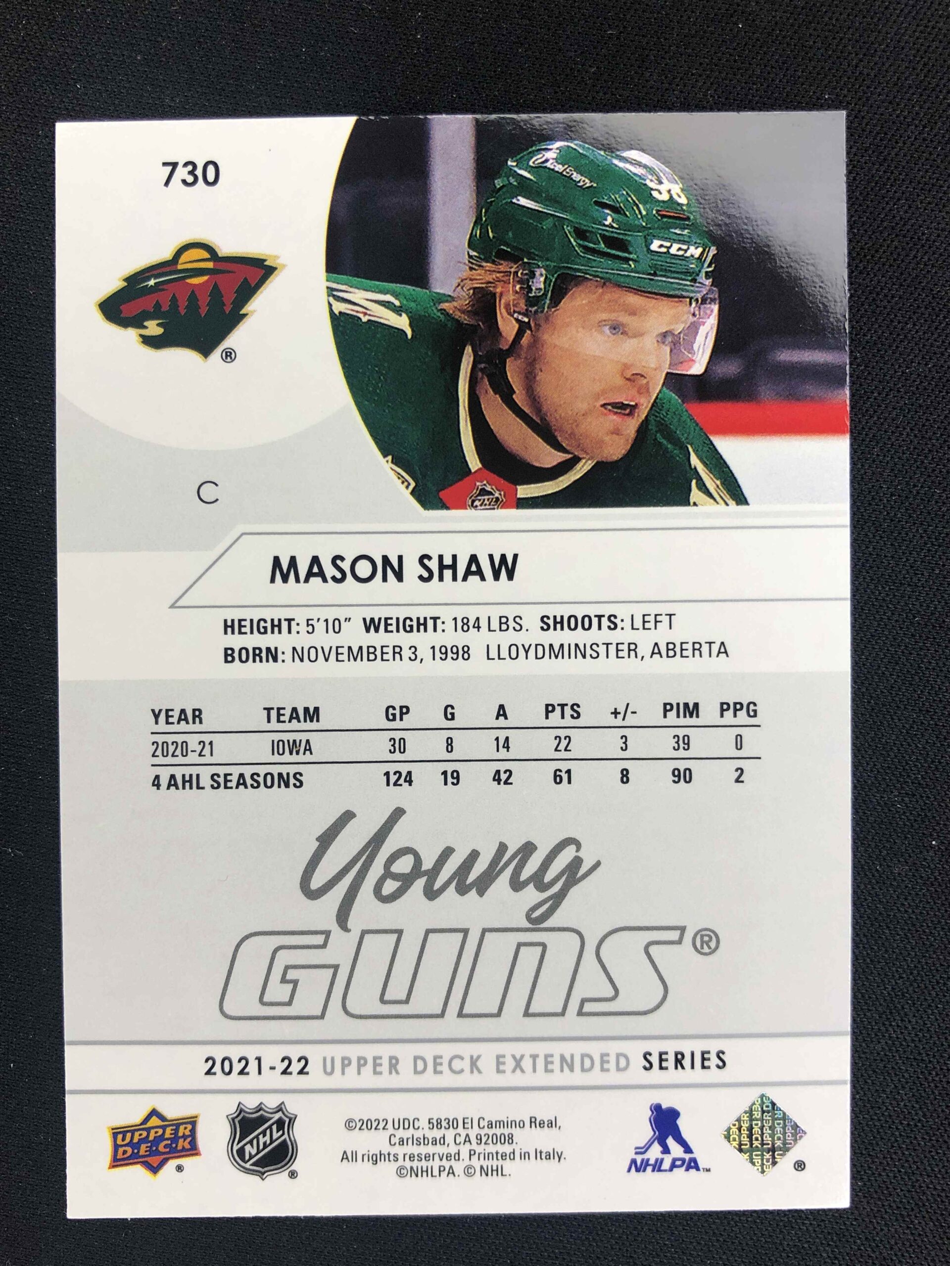 Sběratelská karta 2021/2022 Upper Deck Extended Young Guns 730 Mason Shaw Inzert