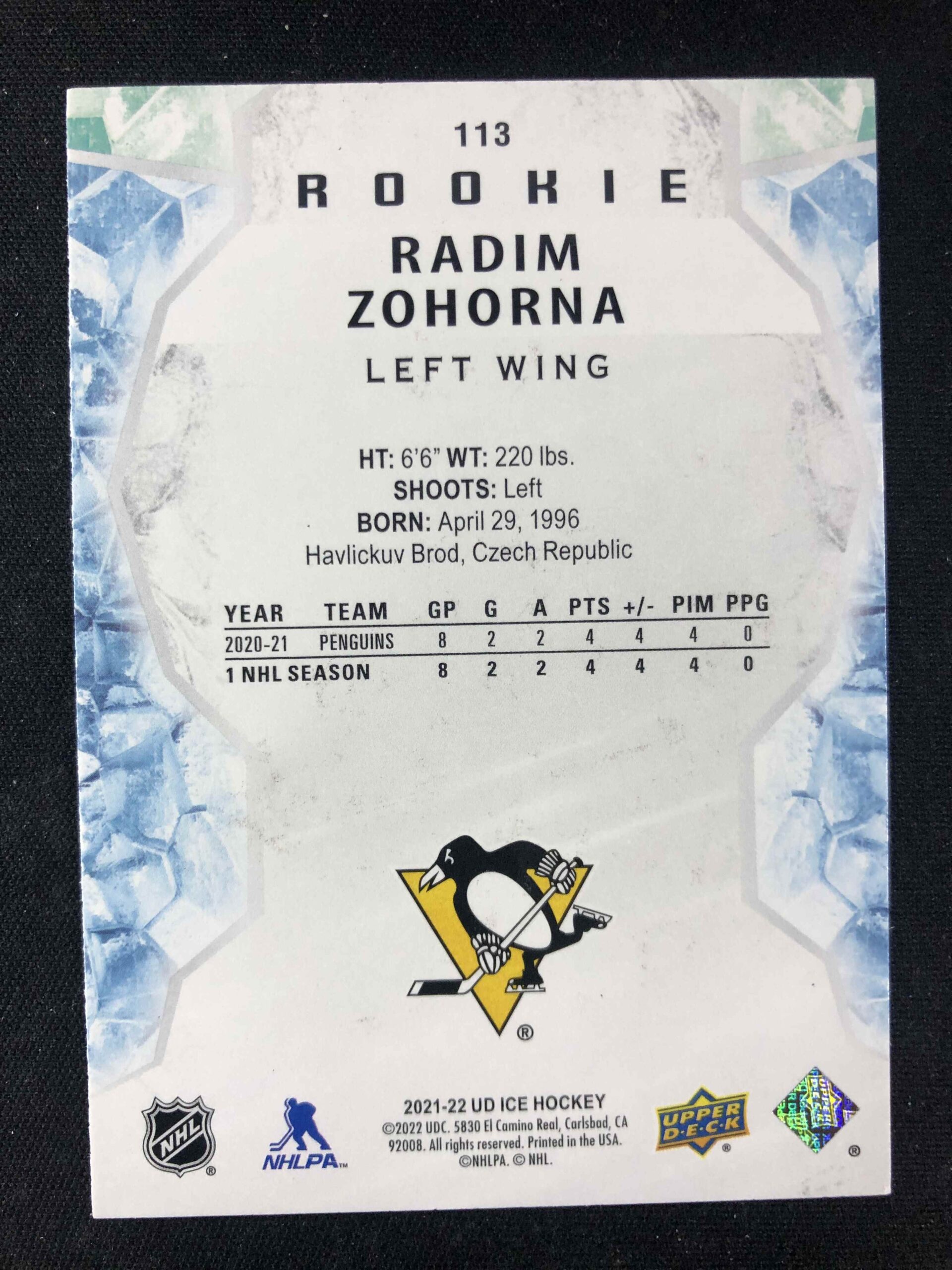 Sběratelská karta 2021/2022 Upper Deck Ice Base 113 Radim Zohorna