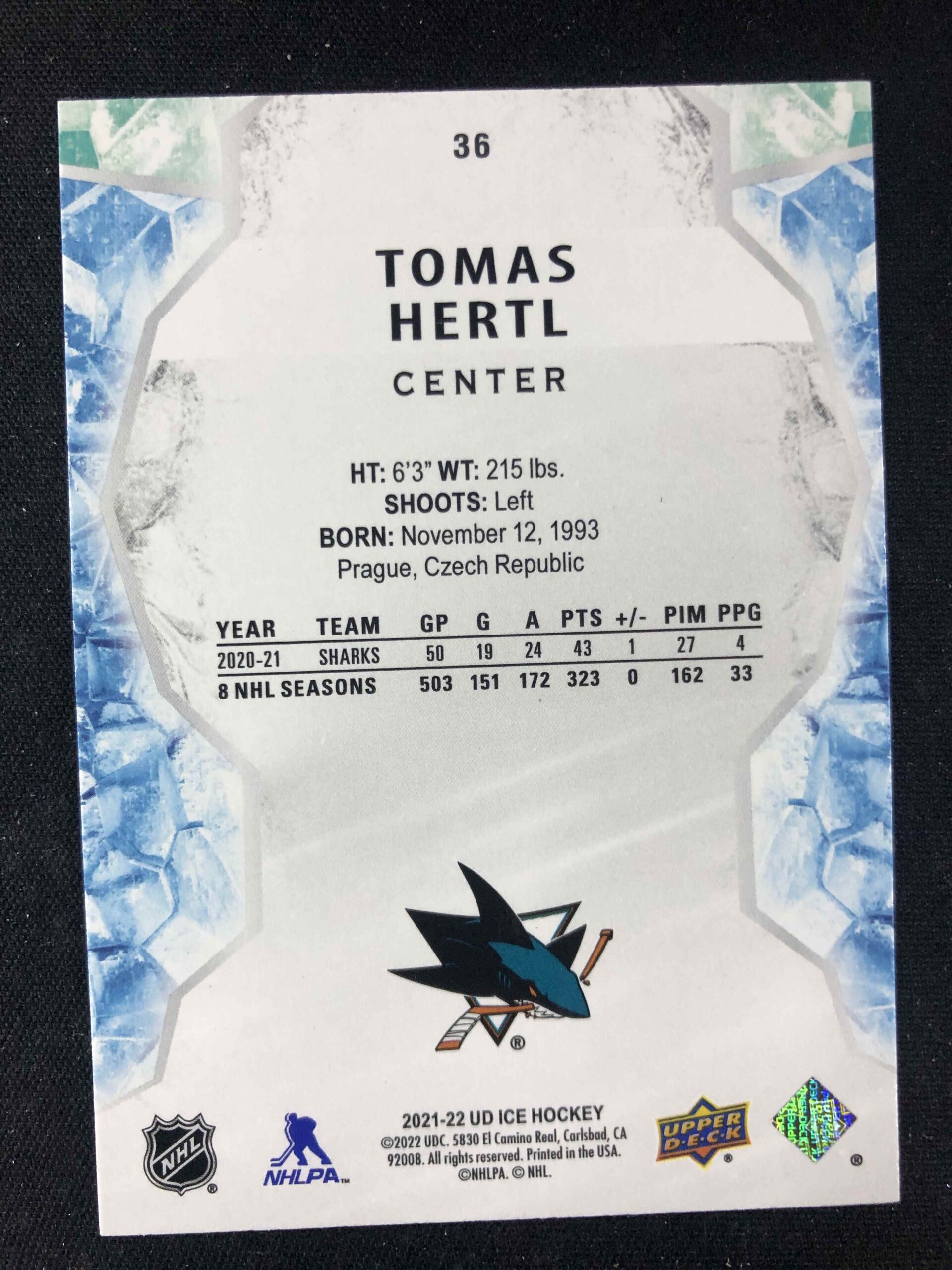 Sběratelská karta 2021/2022 Upper Deck Ice Gold 36 Tomas Hertl Paralel