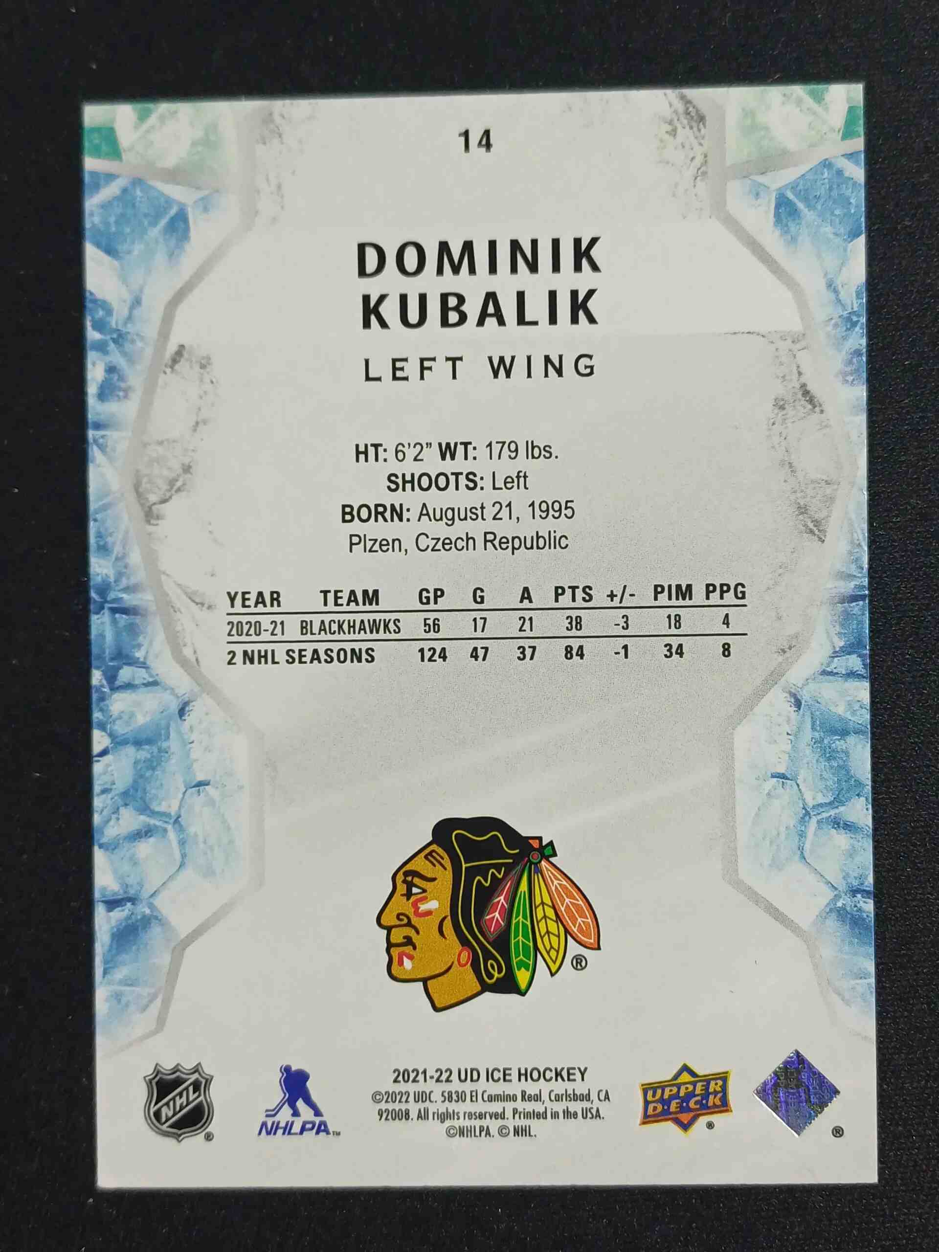 Sběratelská karta 2021/2022 Upper Deck ICE Green 14 Dominik Kubalik Paralel