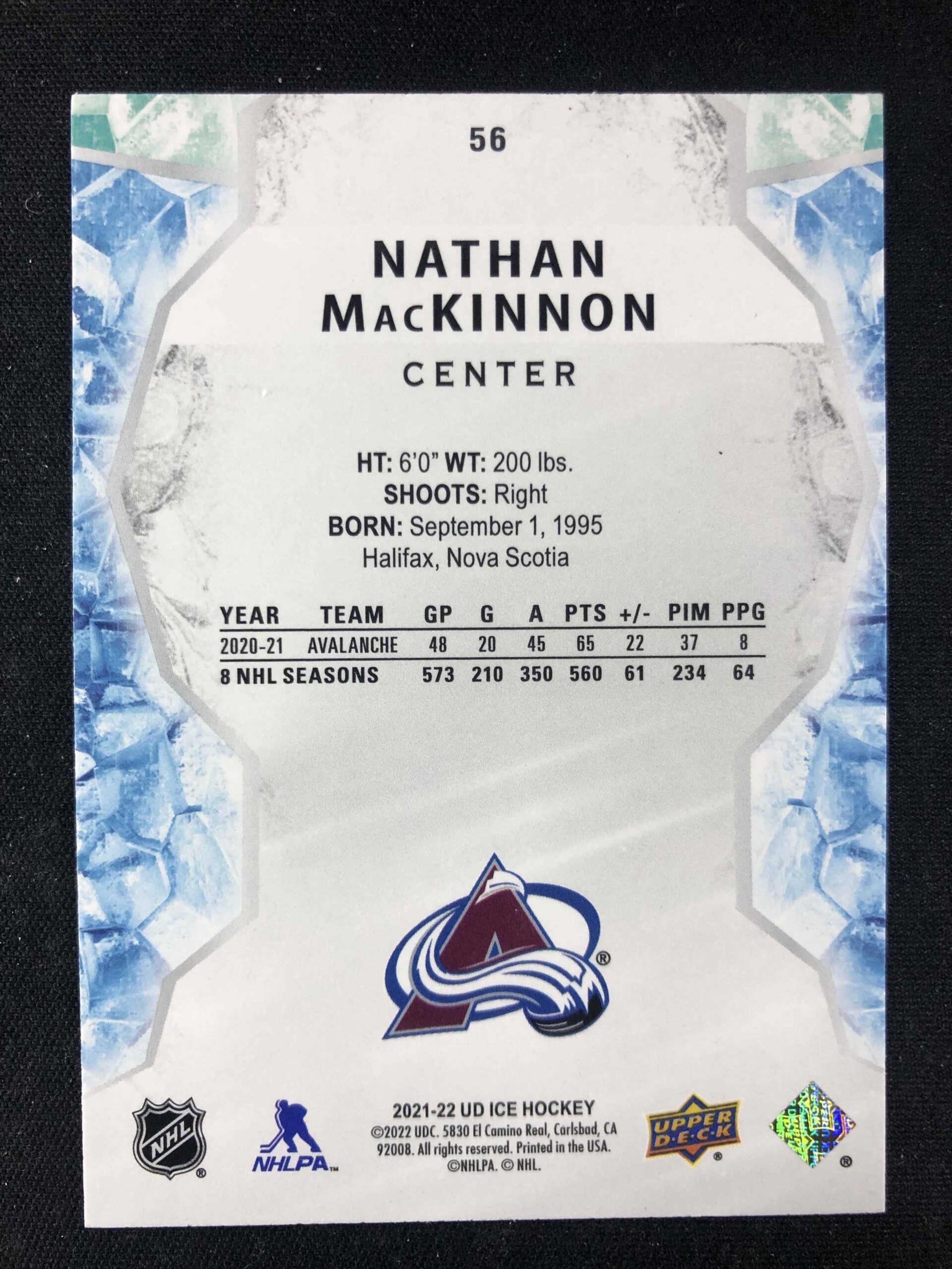 Sběratelská karta 2021/2022 Upper Deck Ice Green 56 Nathan MacKinnon Paralel