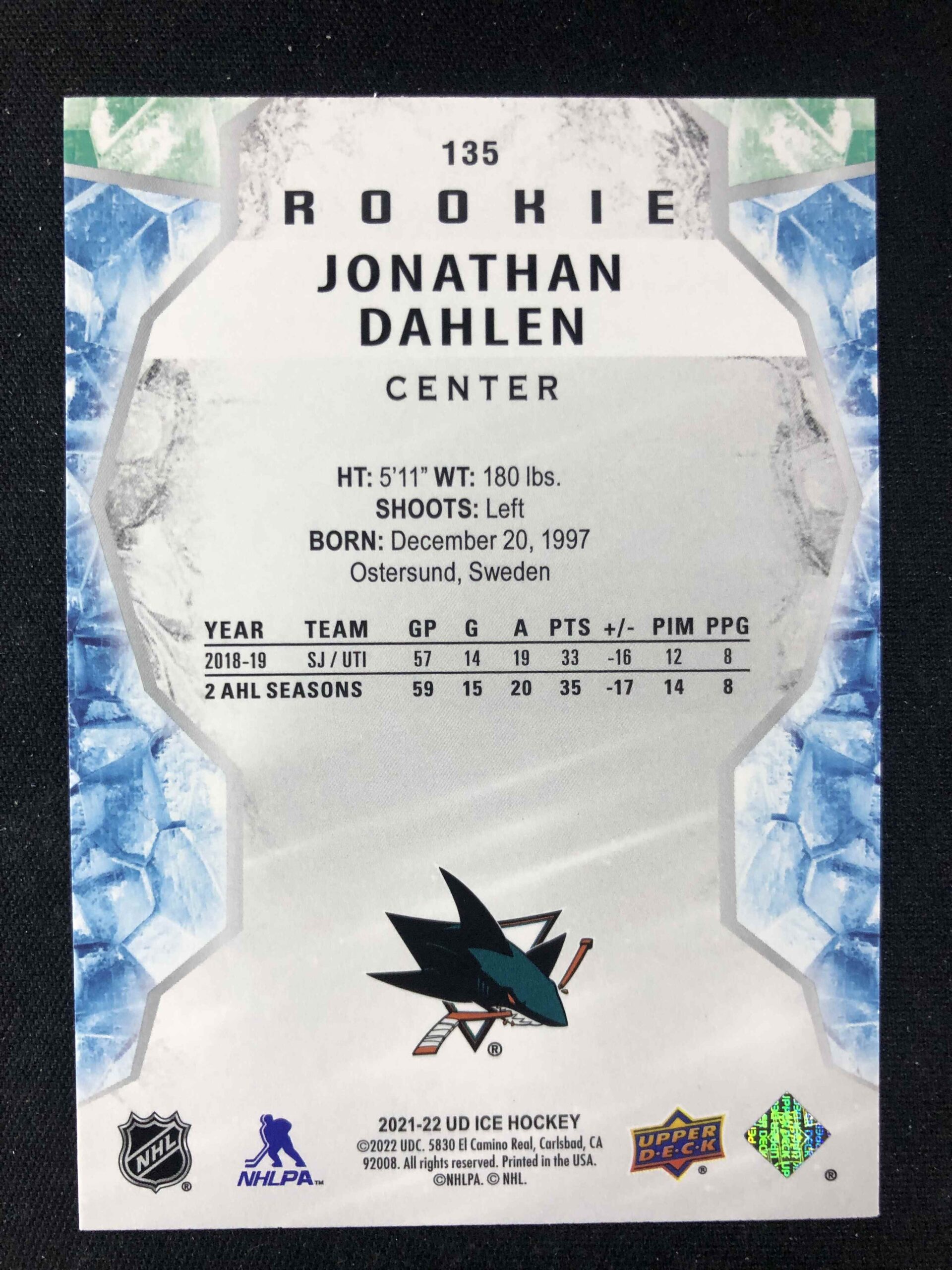 Sběratelská karta 2021/2022 Upper Deck Ice Orange 135 Jonathan Dahlen Paralel