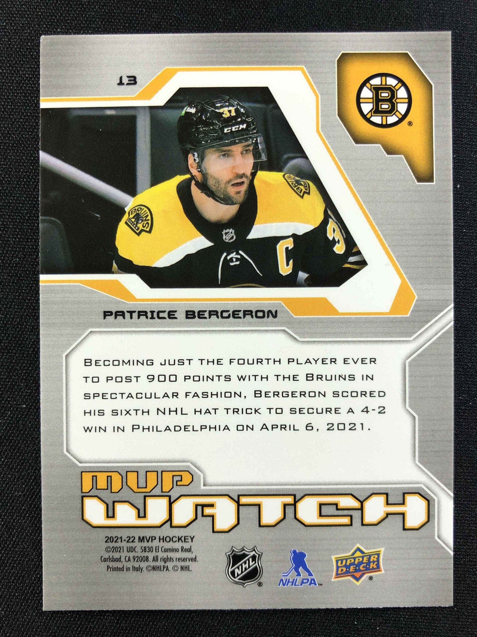 Sběratelská karta 2021/2022 Upper Deck MVP 20th Anniversary 13 Patrice Bergeron Inzert