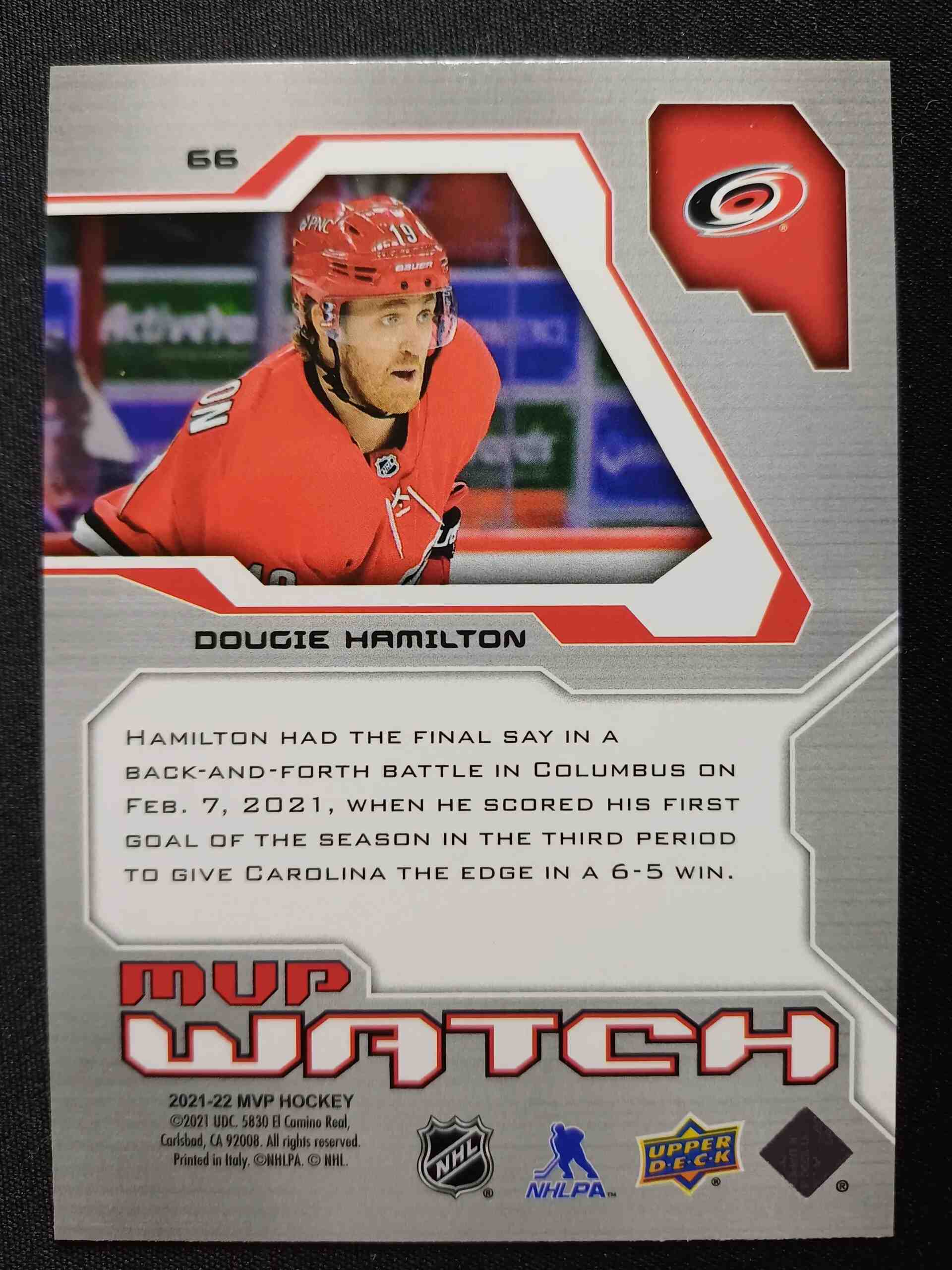 Sběratelská karta 2021/2022 Upper Deck MVP 20th Anniversary Gold 66 Dougie Hamilton Paralel