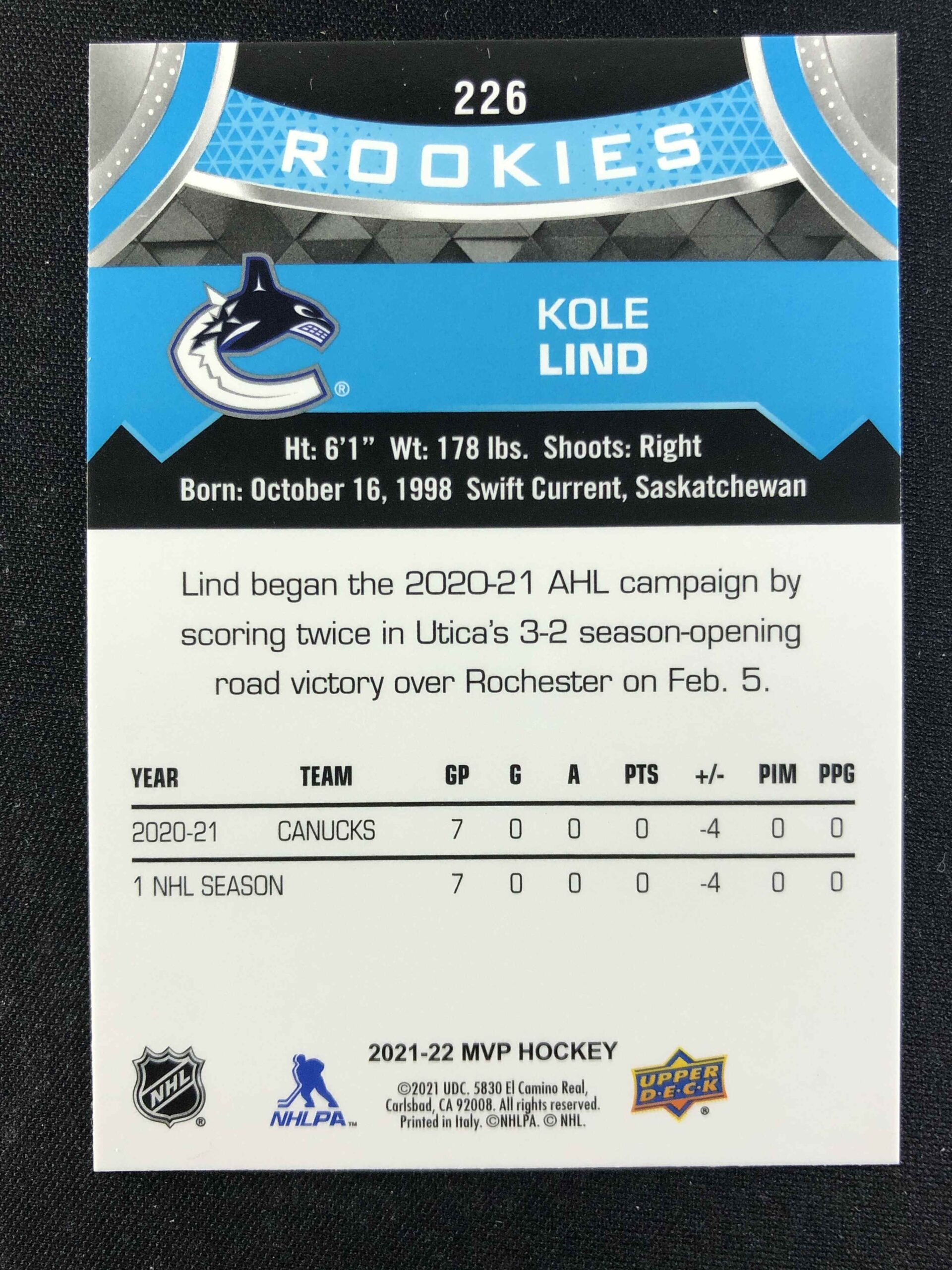 Sběratelská karta 2021/2022 Upper Deck MVP Base 226 Kole Lind