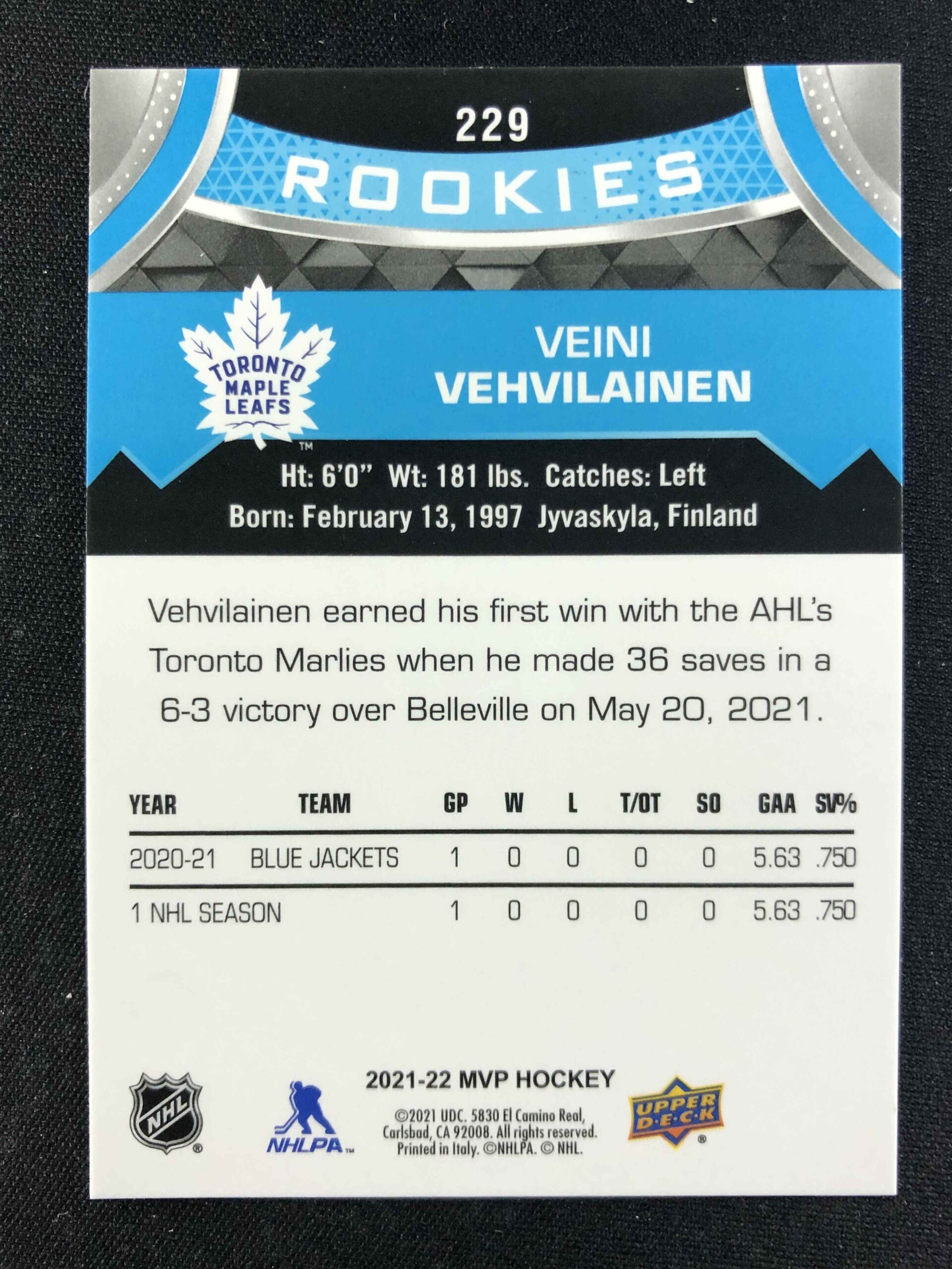 2021/2022 Upper Deck MVP Base 229 Veini Vehvilainen