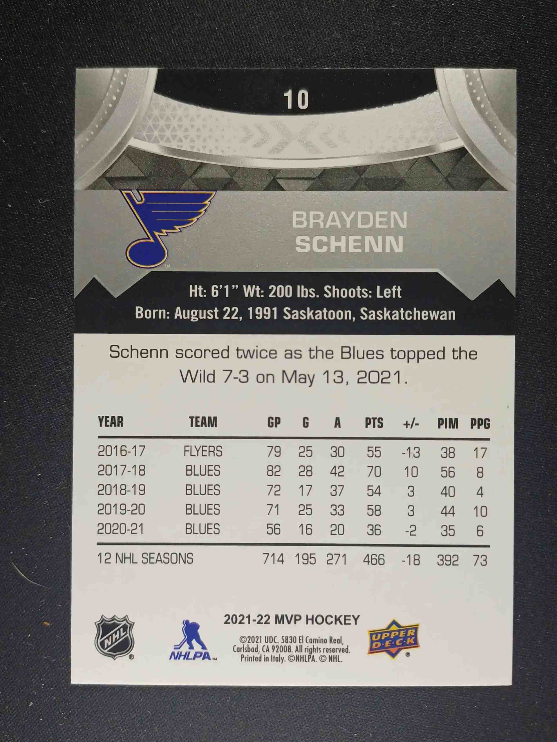 Sběratelská karta 2021/2022 Upper Deck MVP Silver Script 10 Brayden Schenn Paralel