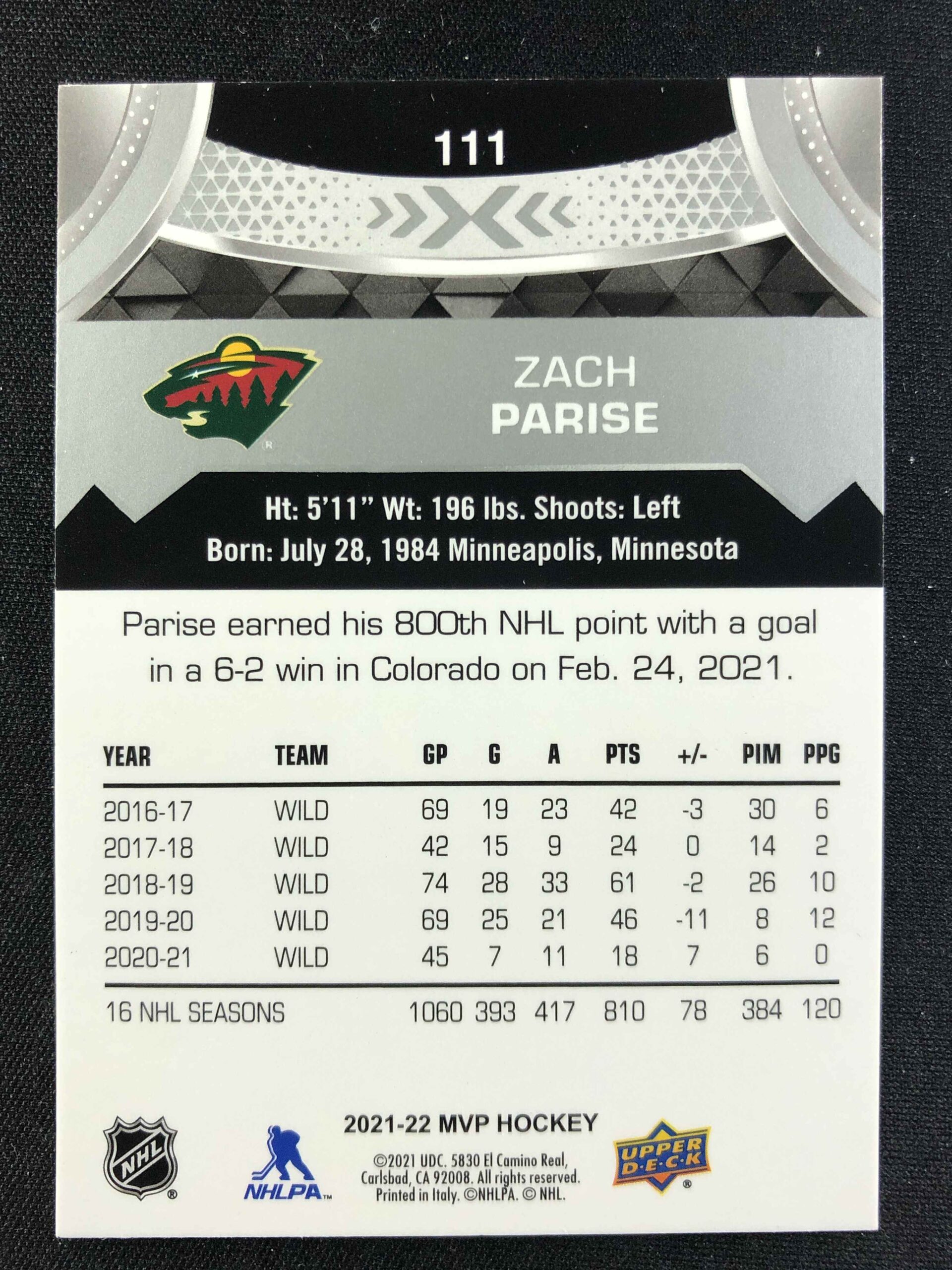 2021/2022 Upper Deck MVP Silver Script 111 Zach Parise Paralel