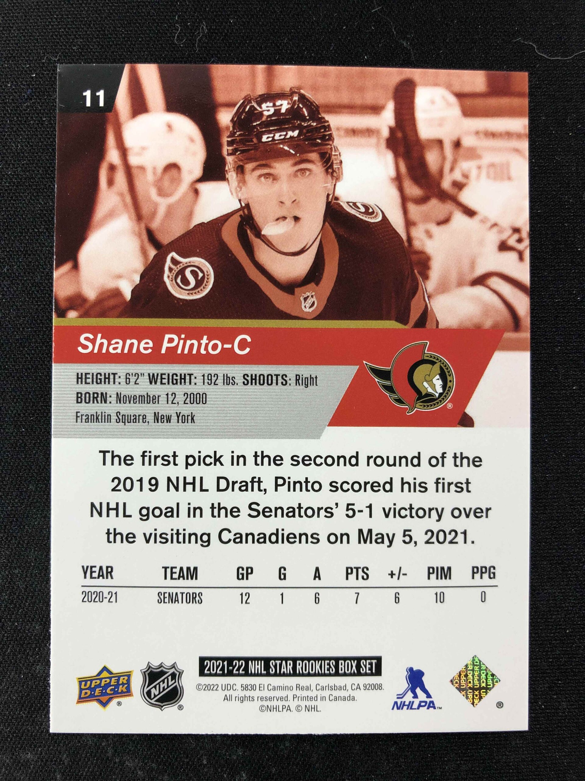 Sběratelská karta 2021/2022 Upper Deck NHL Star Rookies Box Set Base 11 Shane Pinto