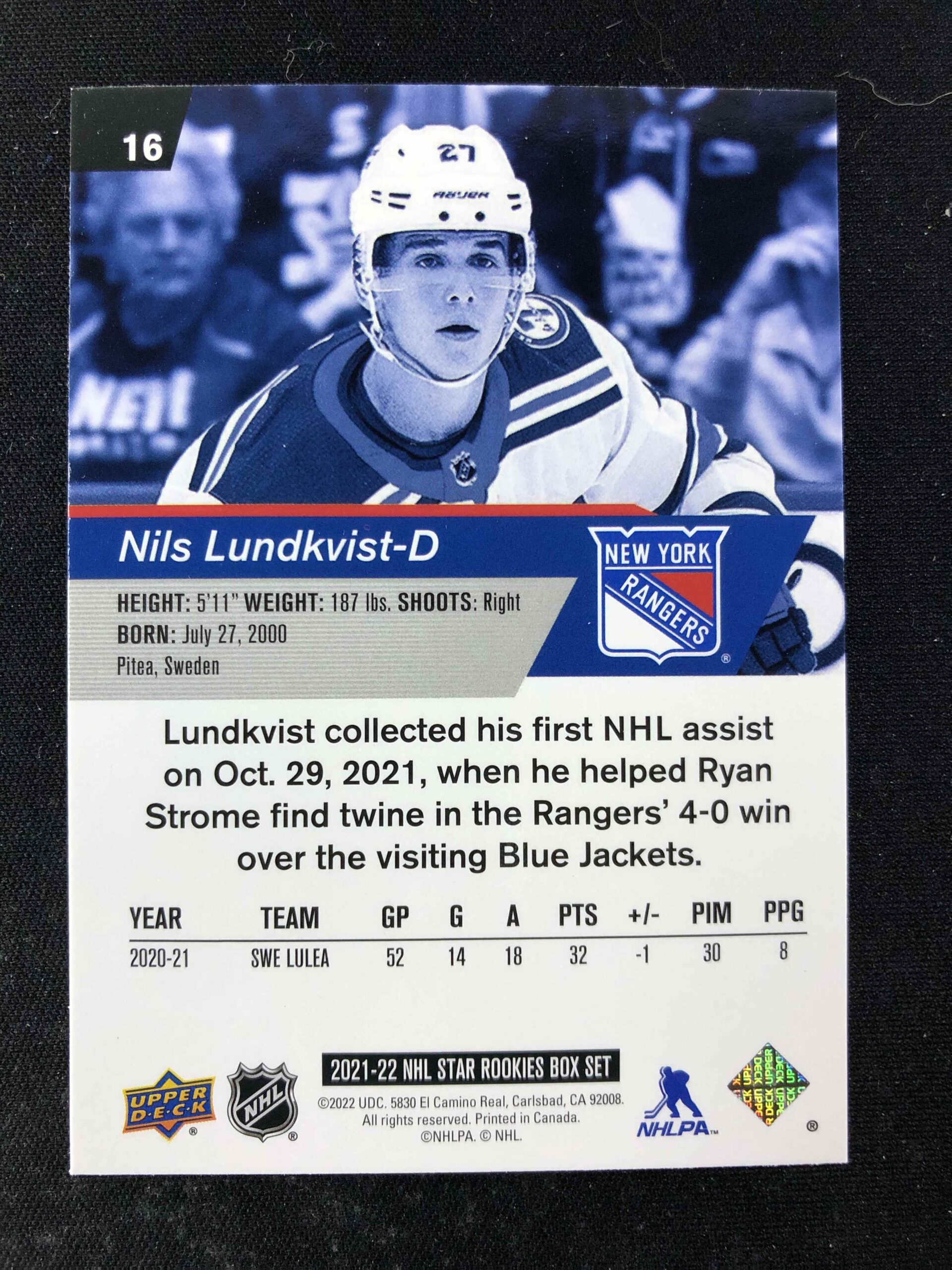 Sběratelská karta 2021/2022 Upper Deck NHL Star Rookies Box Set Base 16 Nils Lundkvist