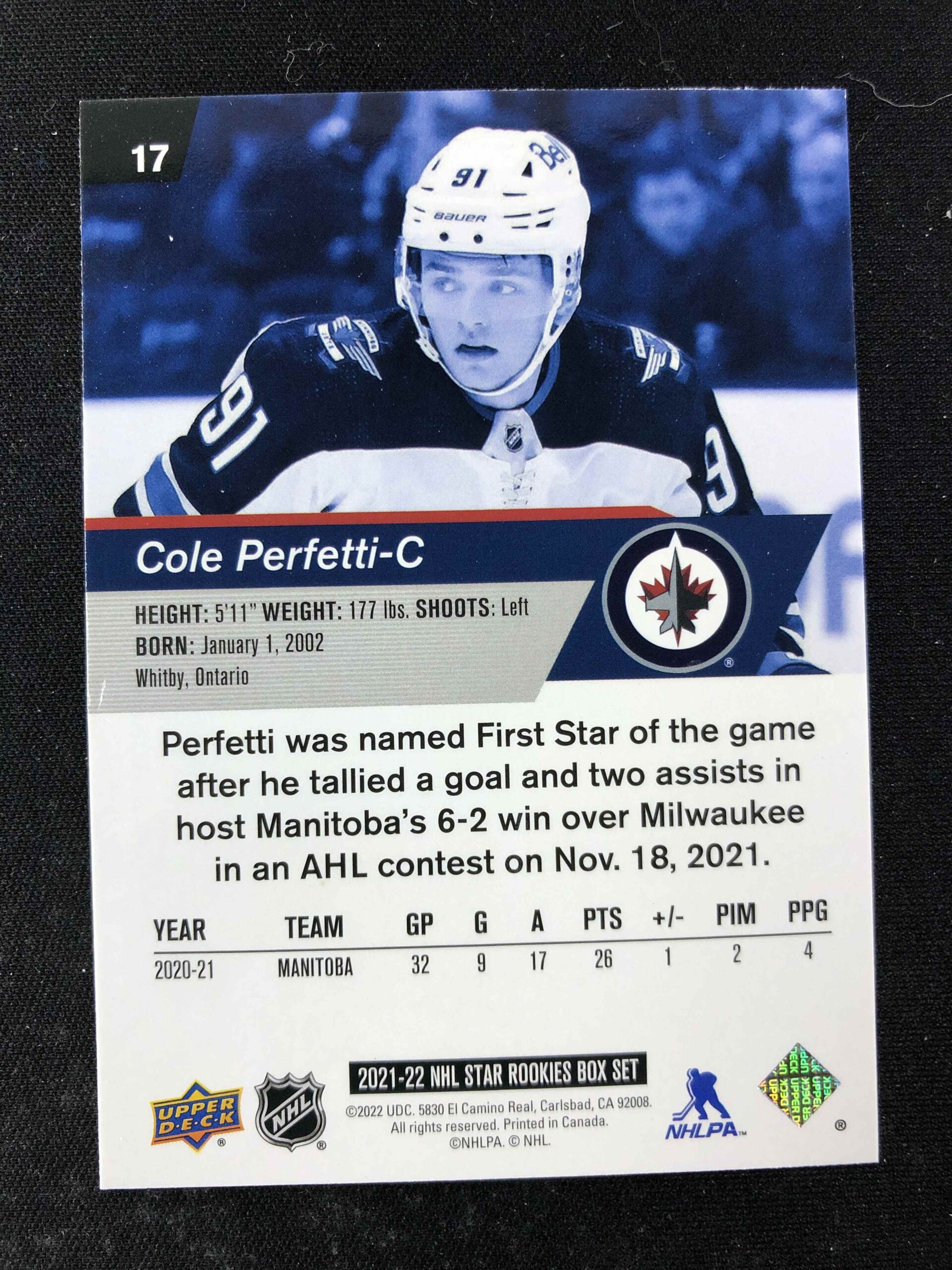 Sběratelská karta 2021/2022 Upper Deck NHL Star Rookies Box Set Base 17 Cole Perfetti
