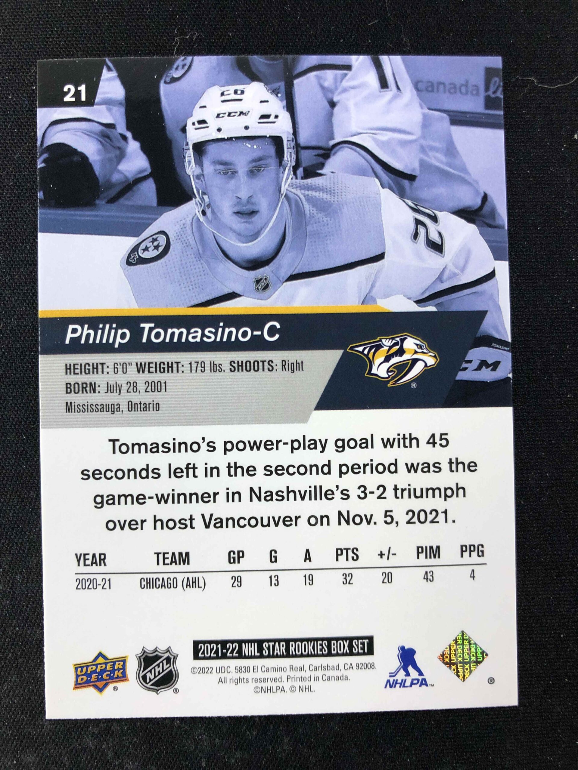 Sběratelská karta 2021/2022 Upper Deck NHL Star Rookies Box Set Base 21 Philip Tomasino