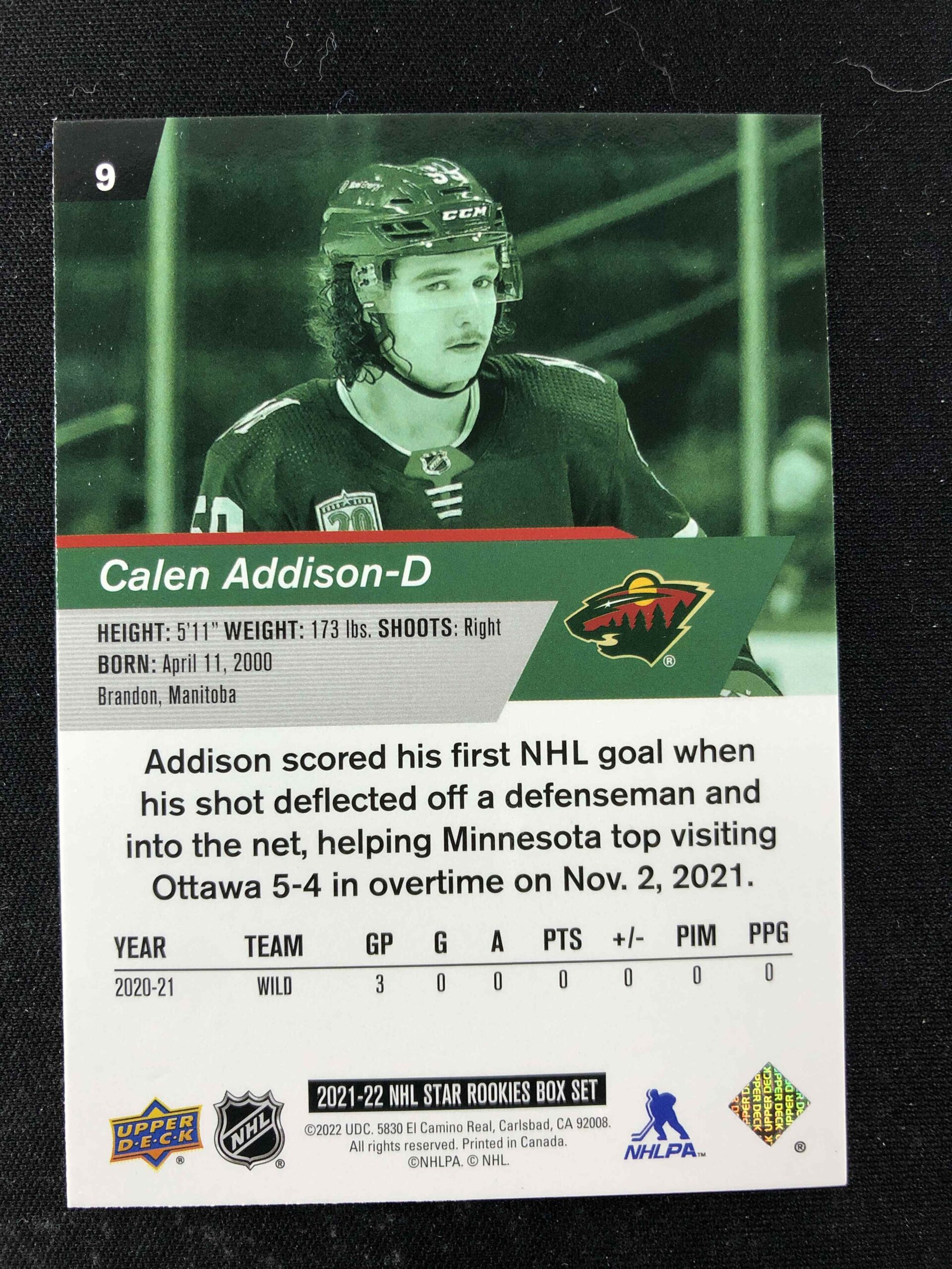 2021/2022 Upper Deck NHL Star Rookies Box Set Base 9 Calen Addison