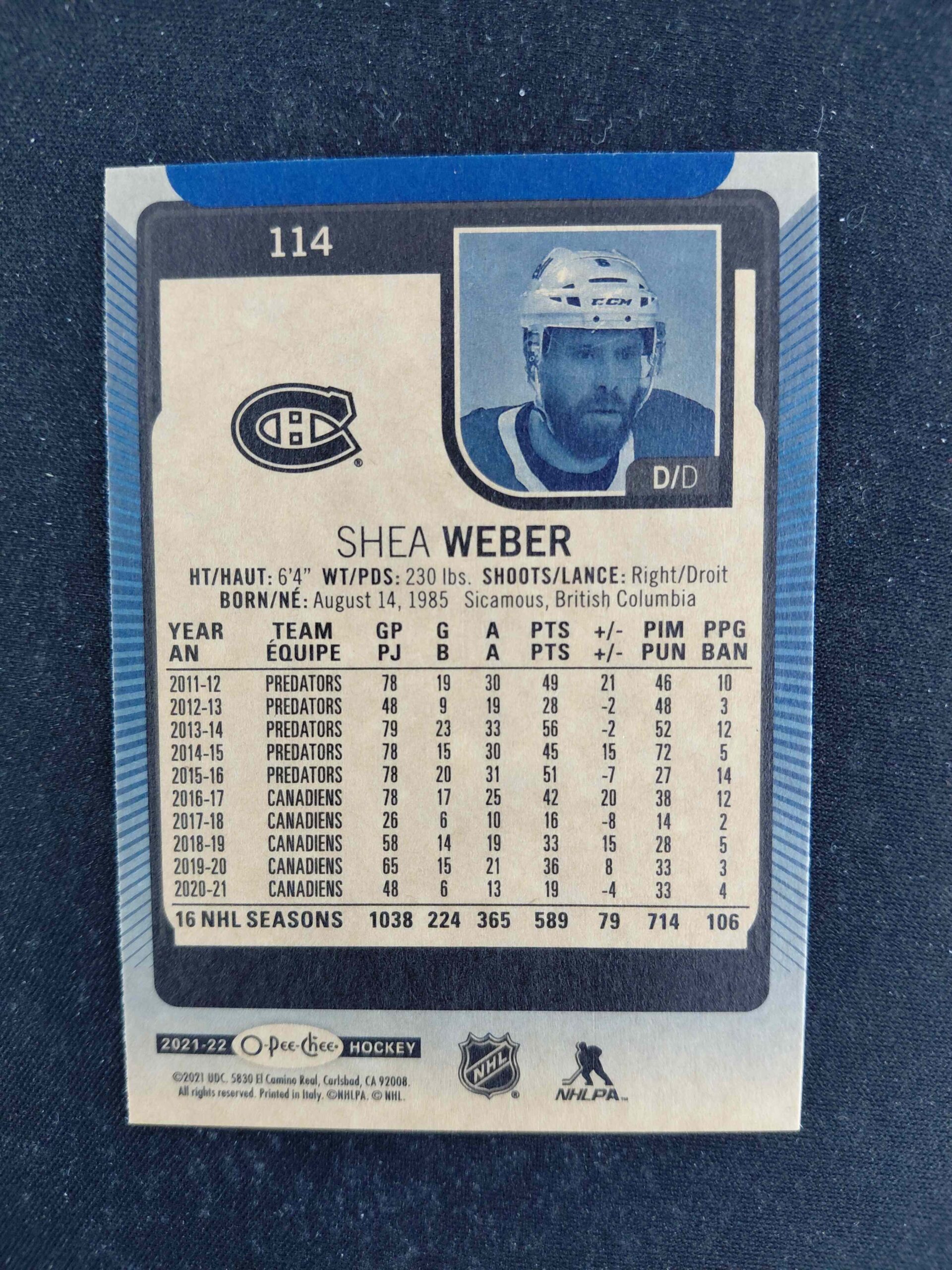 2021/2022 Upper Deck O-Pee-Chee Blue Border 114 Shea Weber Paralel