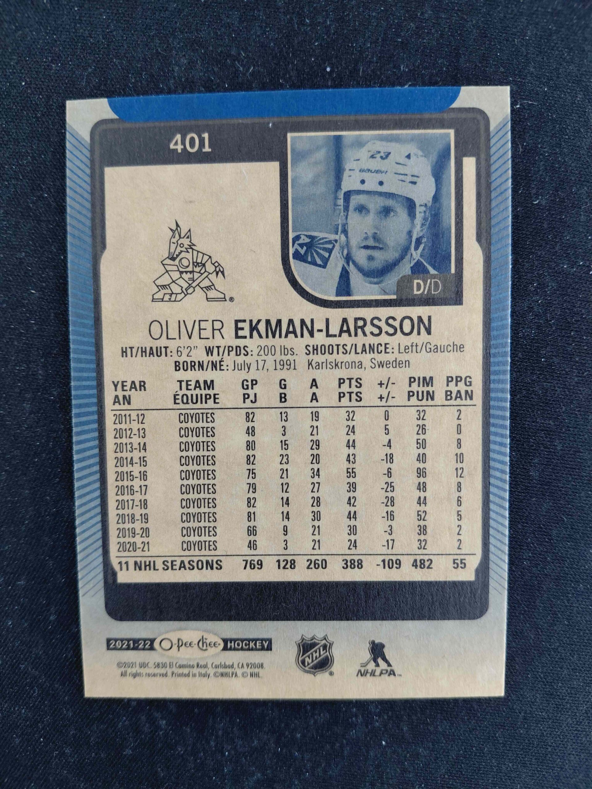 Sběratelská karta 2021/2022 Upper Deck O-Pee-Chee Blue Border 401 Oliver Ekman-Larsson Paralel