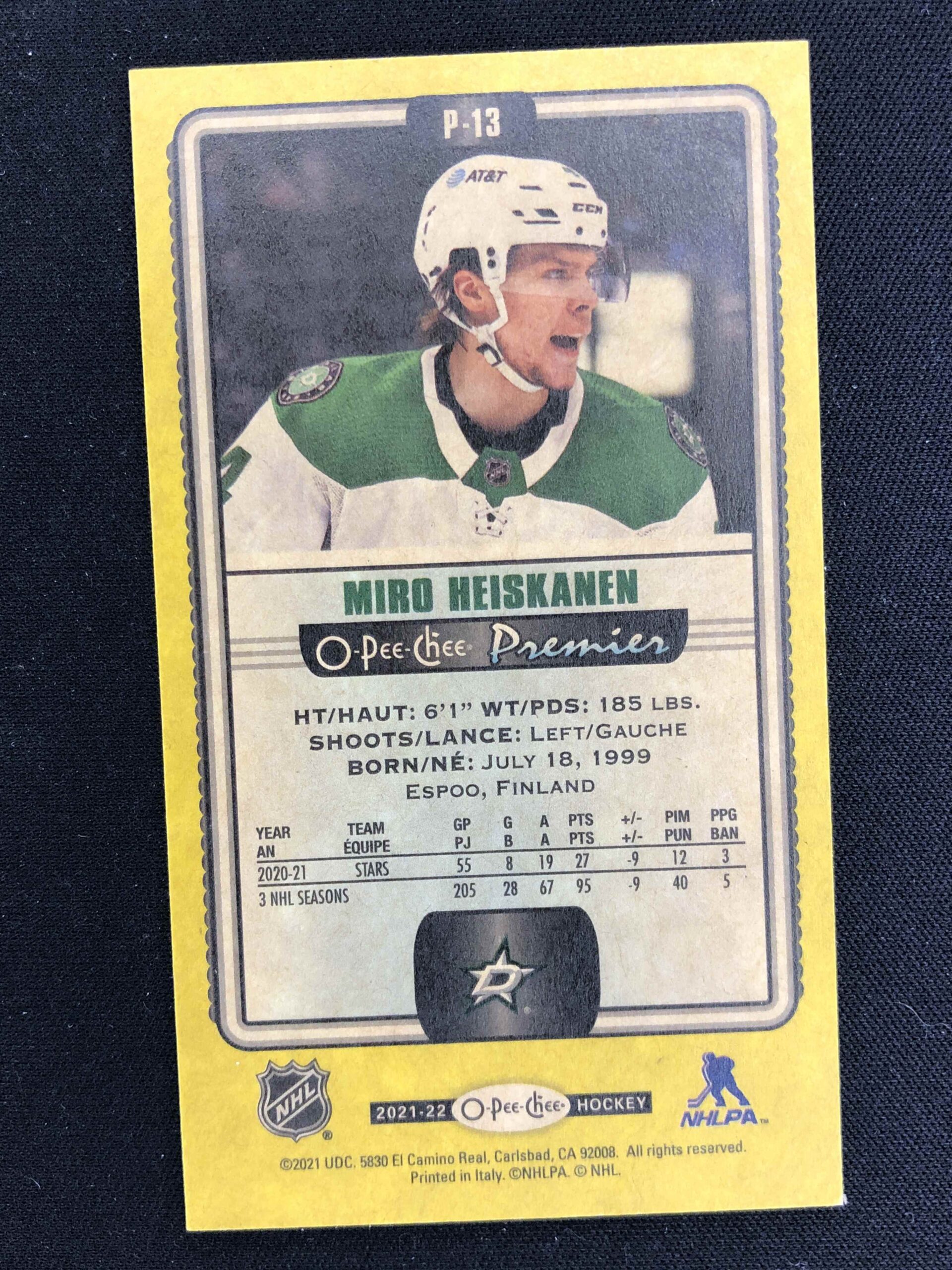 Sběratelská karta 2021/2022 Upper Deck O-Pee-Chee Premier P-13 Miro Heiskanen Inzert