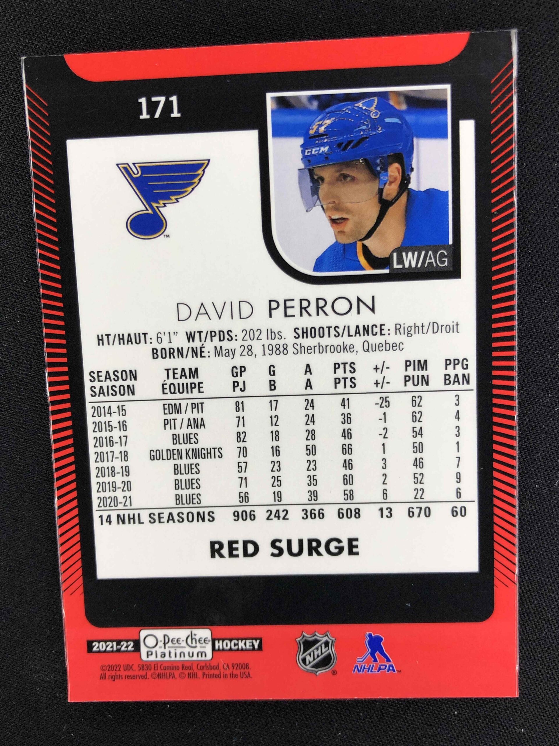 2021/2022 Upper Deck OPC Platinum Red Surge 171 David Perron Paralel