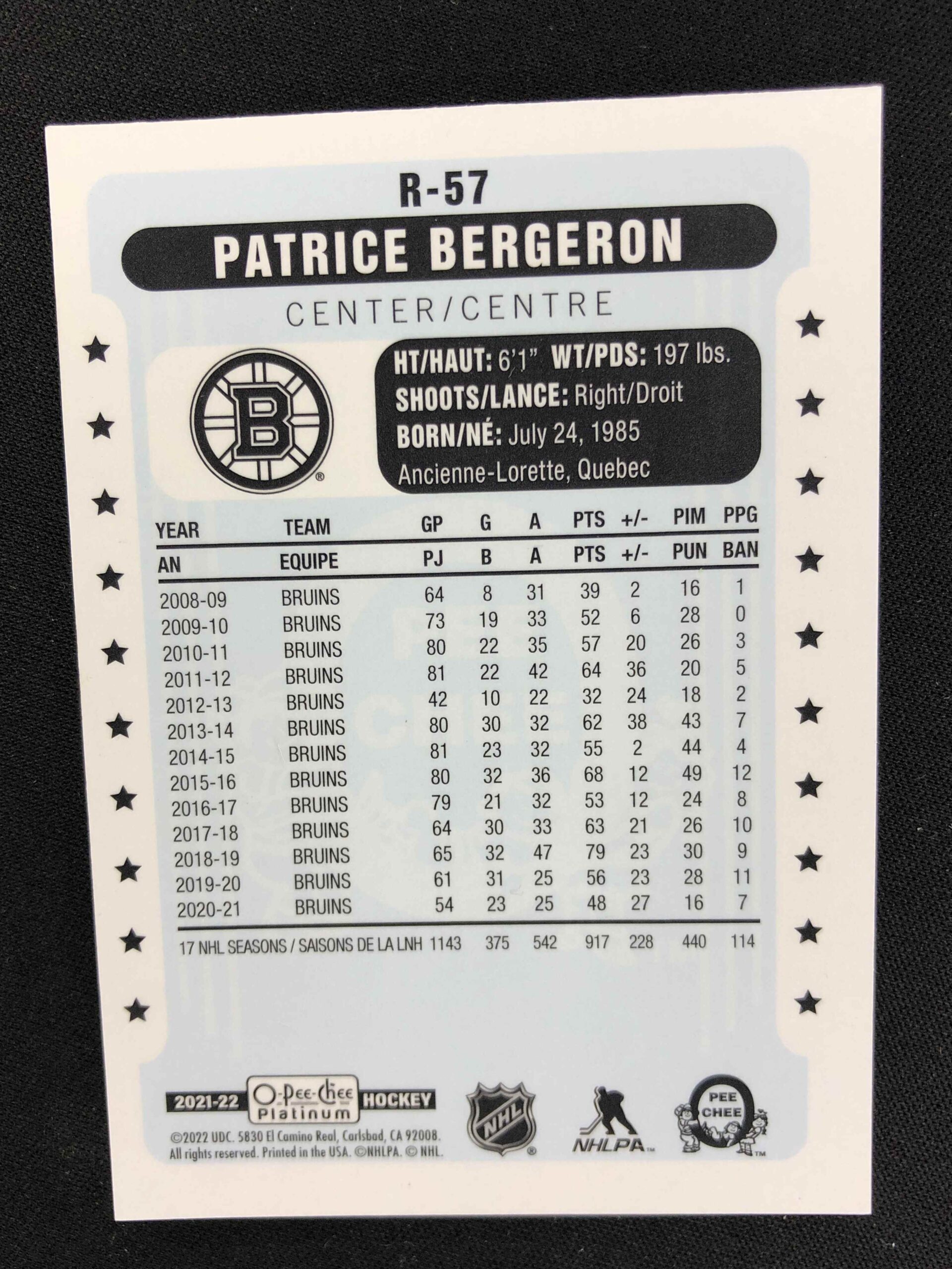 Sběratelská karta 2021/2022 Upper Deck OPC Platinum Retro R-57 Patrice Bergeron Paralel