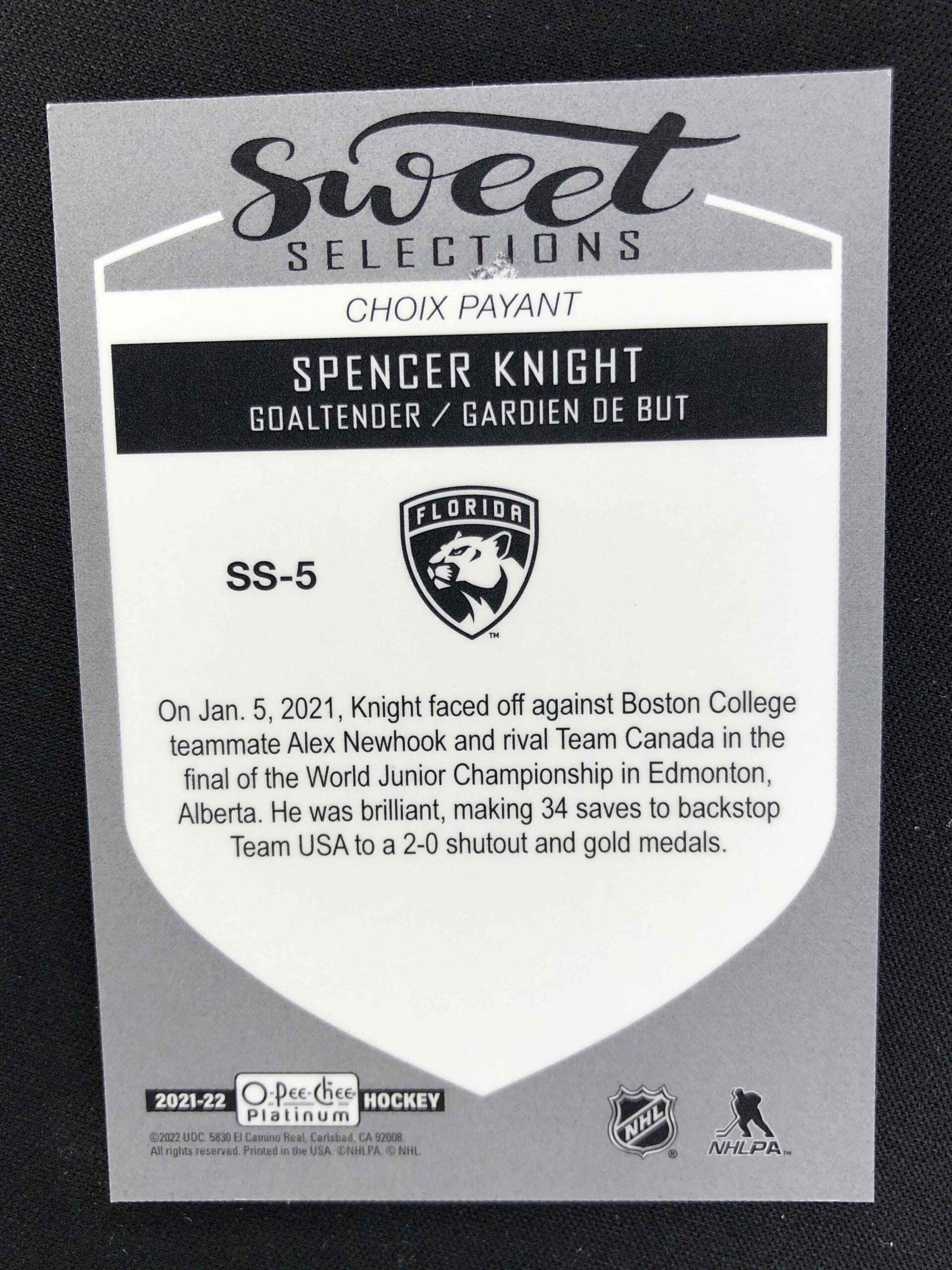 Sběratelská karta 2021/2022 Upper Deck OPC Platinum Sweet Selections SS-5 Spencer Knight Inzert