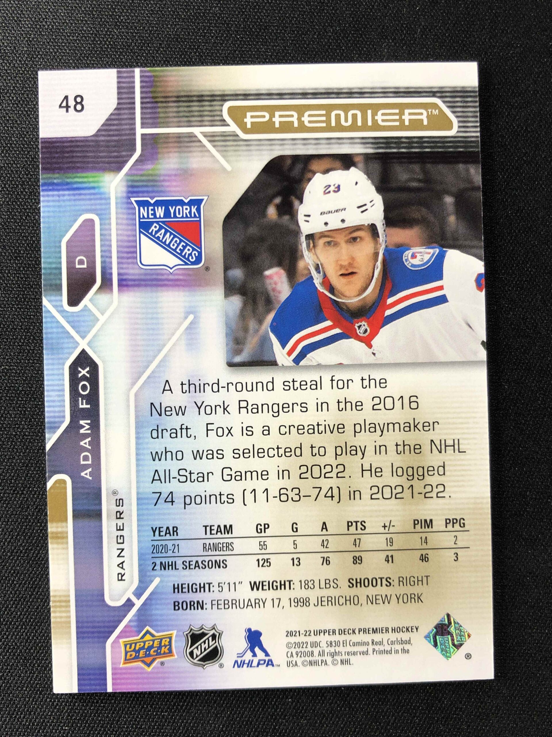 Sběratelská karta 2021/2022 Upper Deck Premier Gold 48 Adam Fox Paralel 40/65
