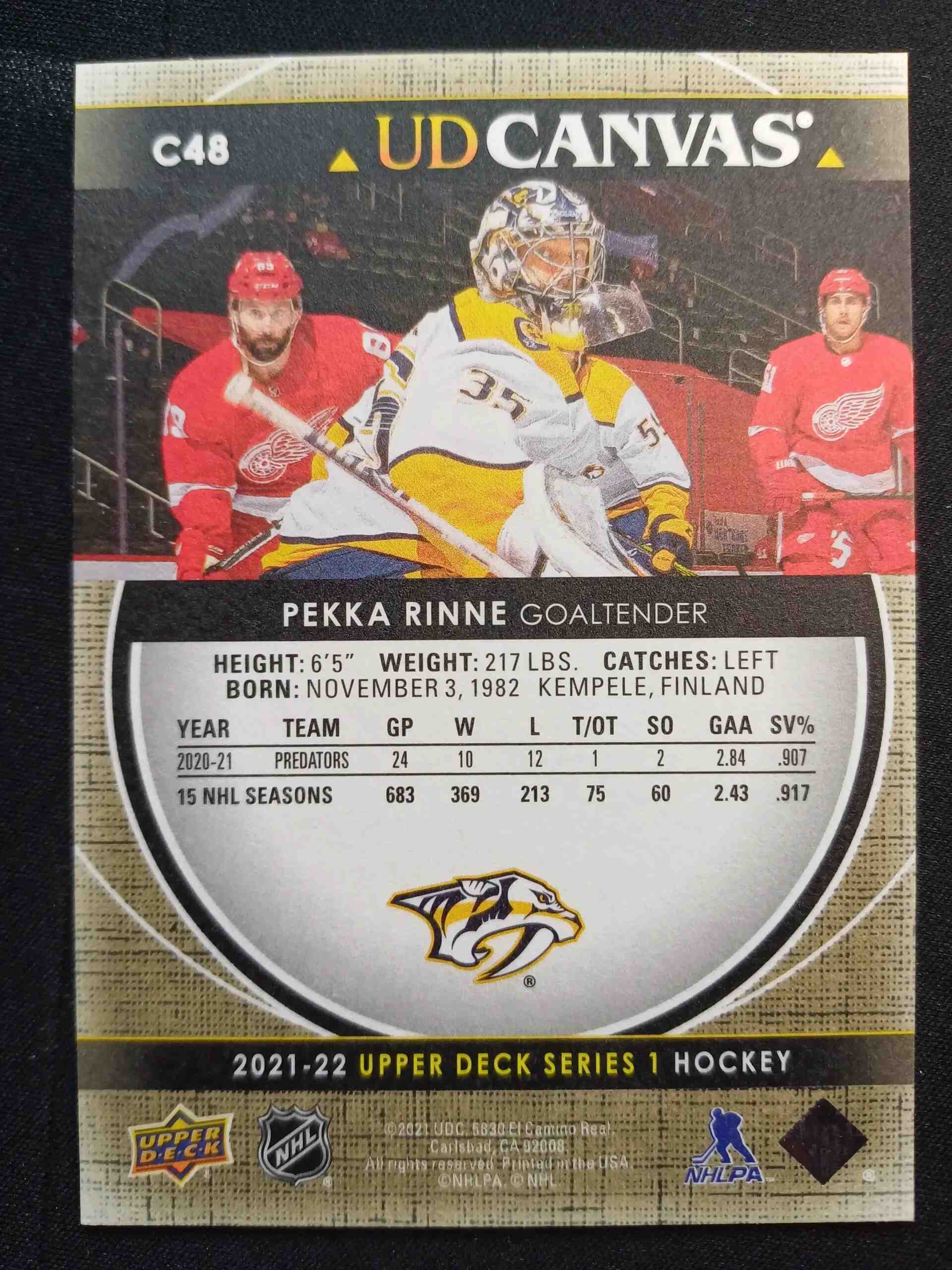 Sběratelská karta 2021/2022 Upper Deck Series 1 Canvas C48 Pekka Rinne Inzert