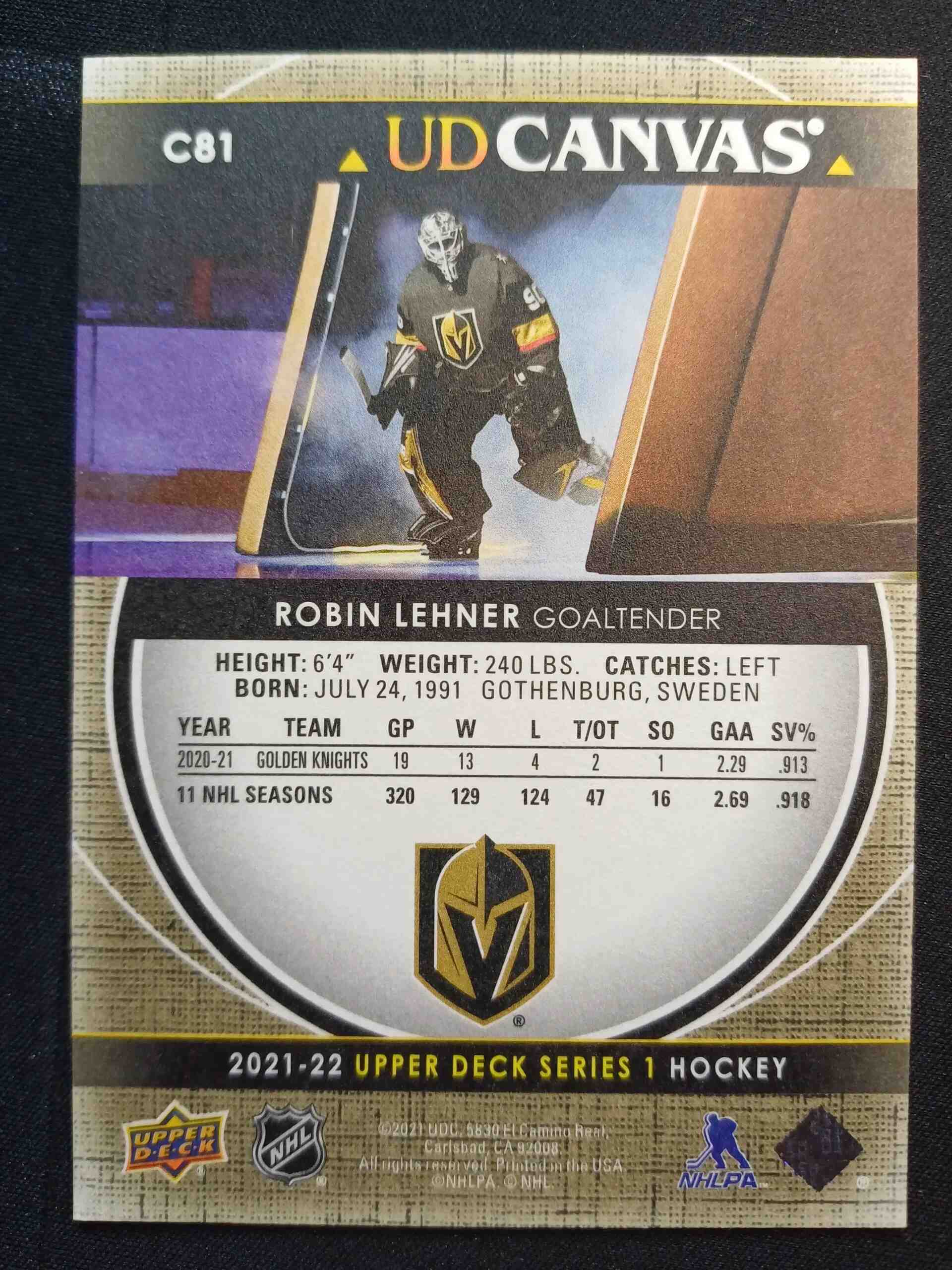 Sběratelská karta 2021/2022 Upper Deck Series 1 Canvas C81 Robin Lehner Inzert
