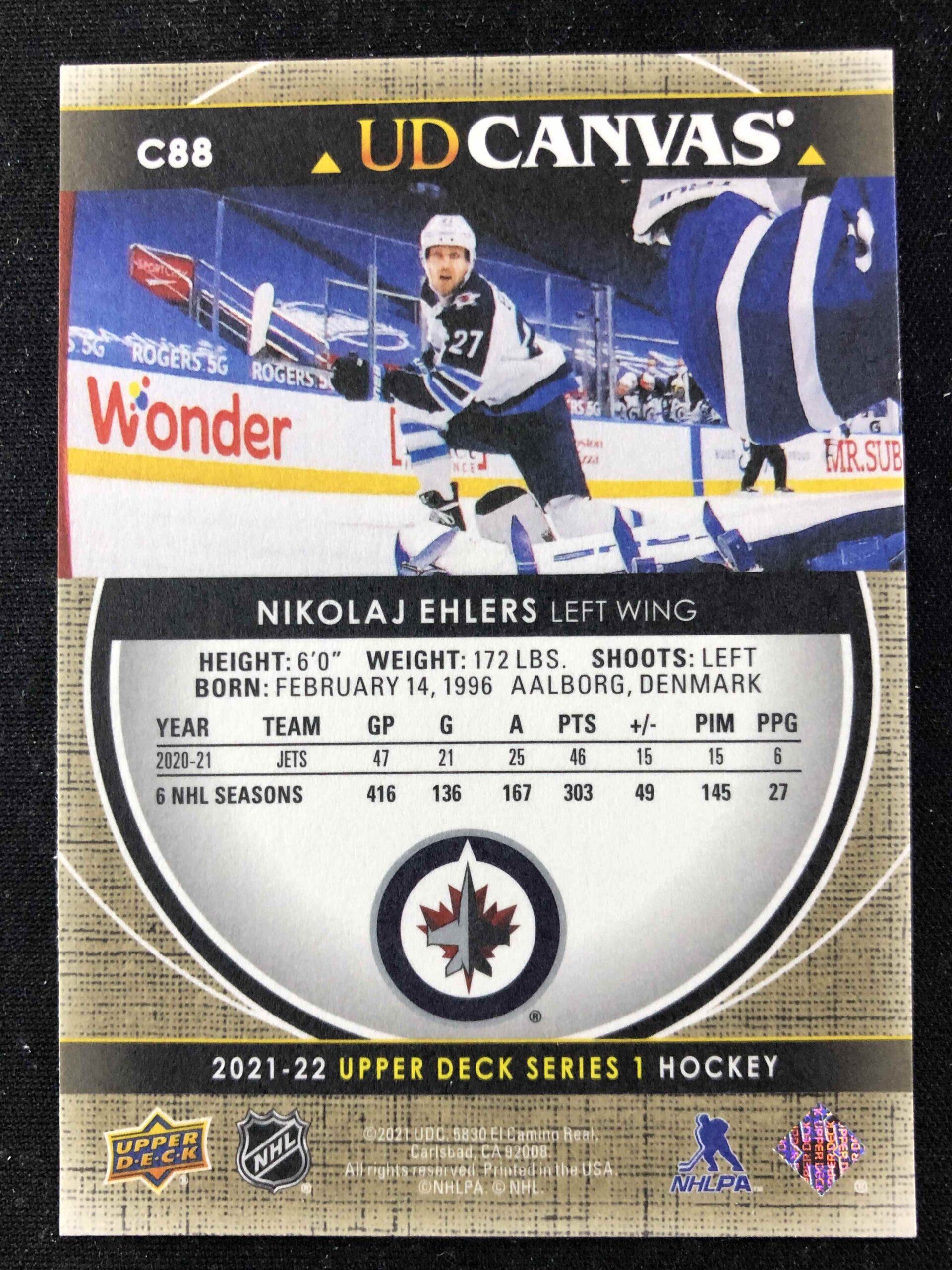 Sběratelská karta 2021/2022 Upper Deck Series 1 Canvas C88 Nikolaj Ehlers Inzert
