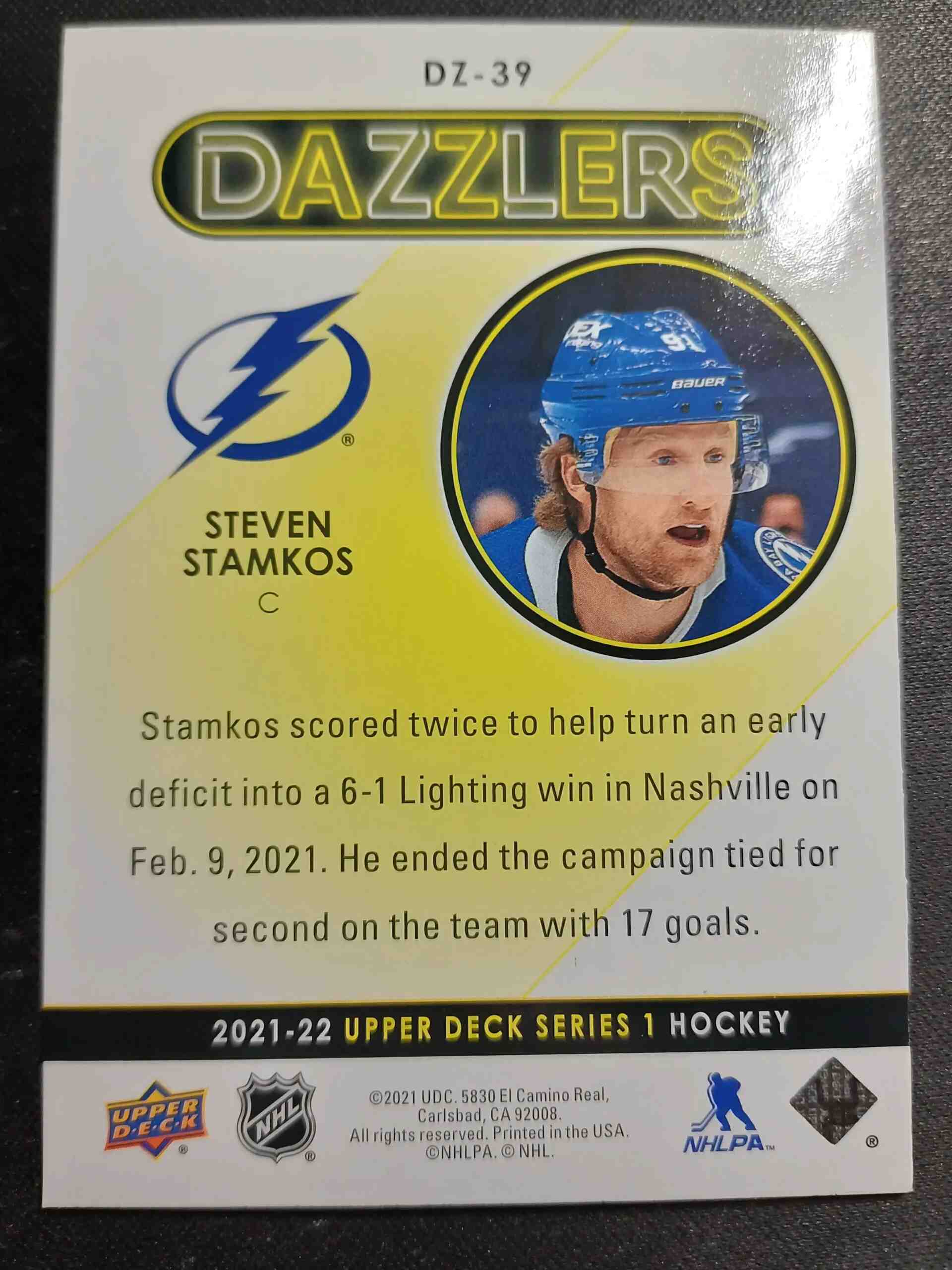 Sběratelská karta 2021/2022 Upper Deck Series 1 Dazzlers Blue DZ-39 Steven Stamkos Inzert