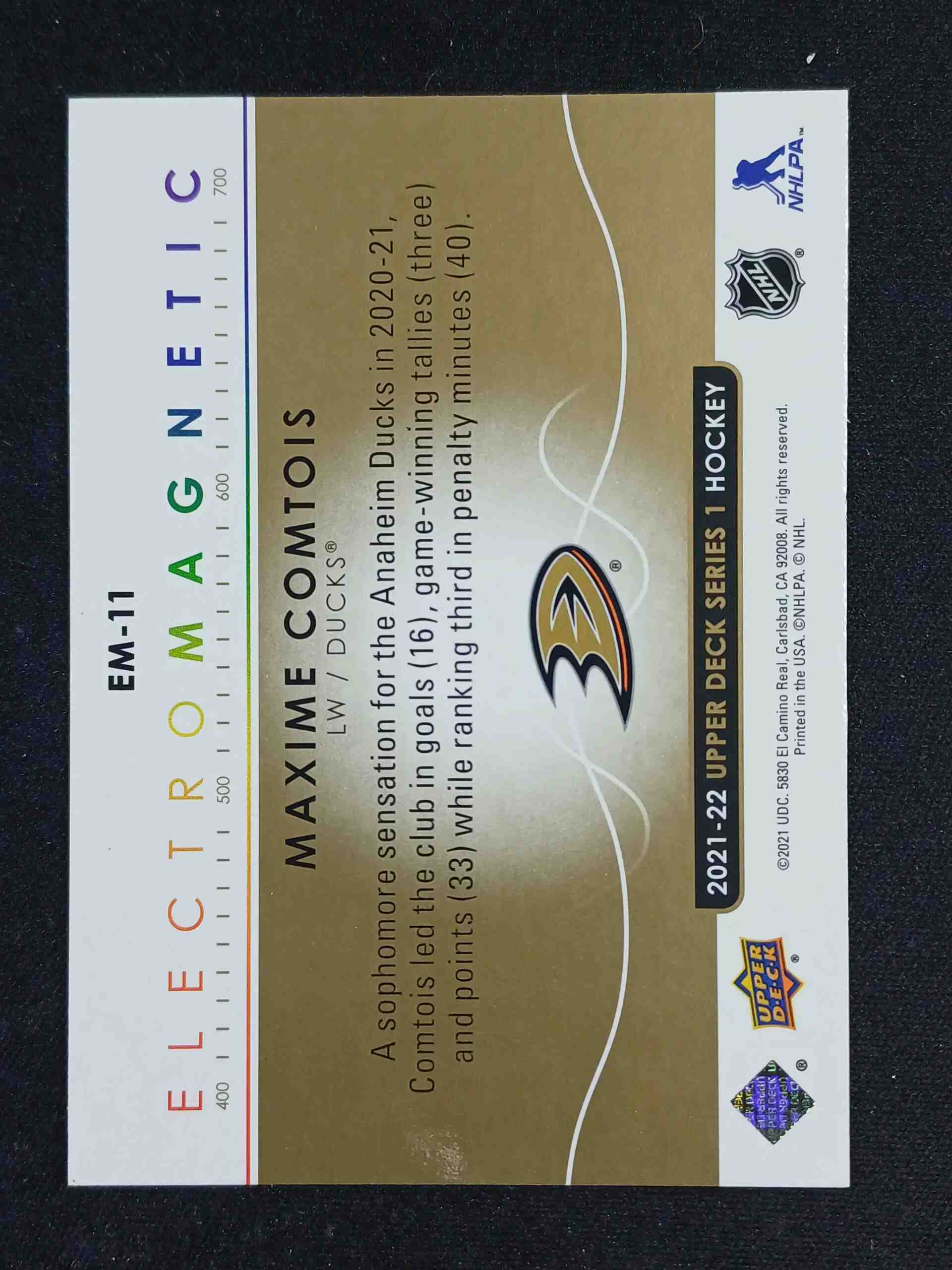Sběratelská karta 2021/2022 Upper Deck Series 1 Electromagnetic EM-11 Maxime Comtois Inzert
