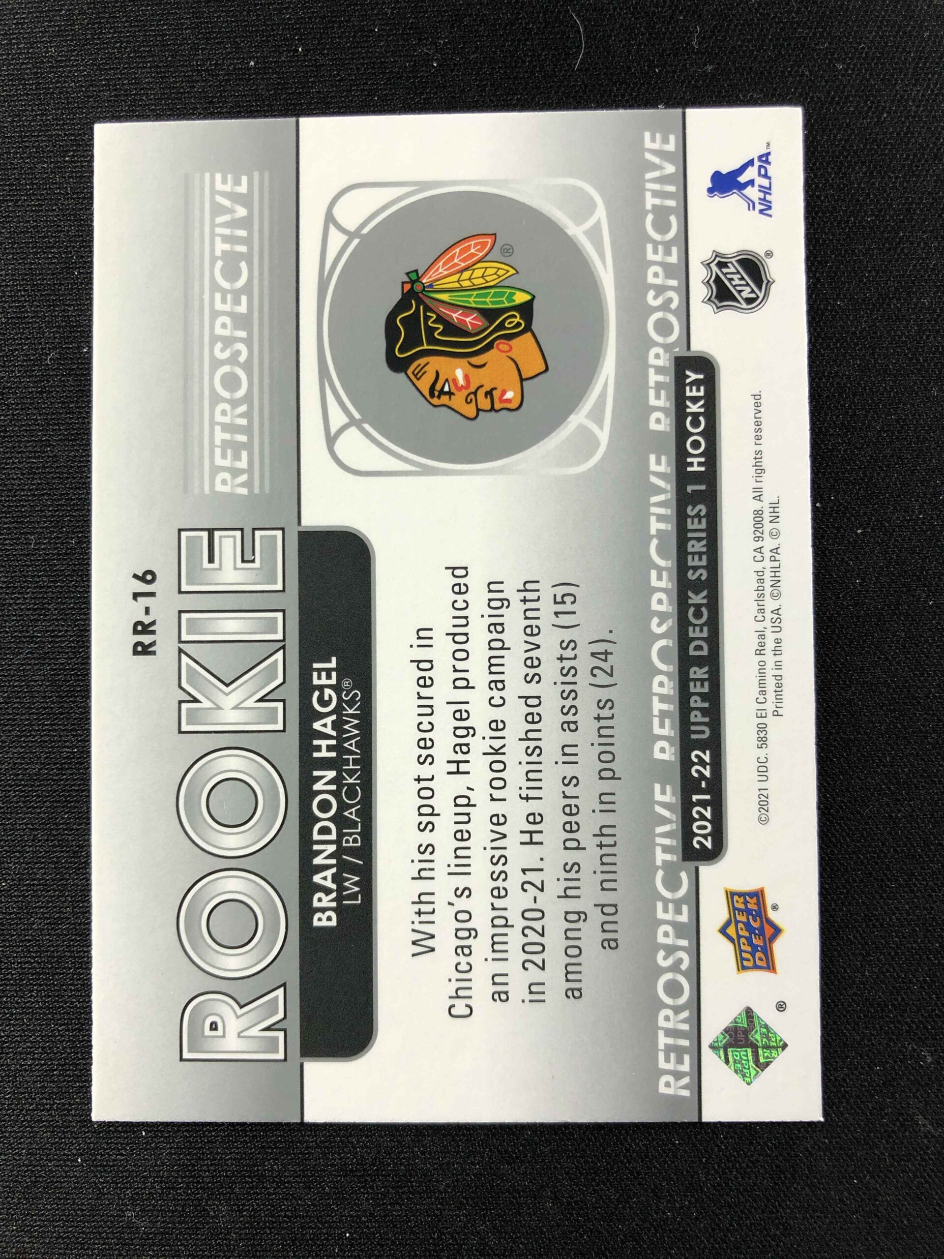 Sběratelská karta 2021/2022 Upper Deck Series 1 Rookie Retrospective RR-16 Brandon Hagel Inzert