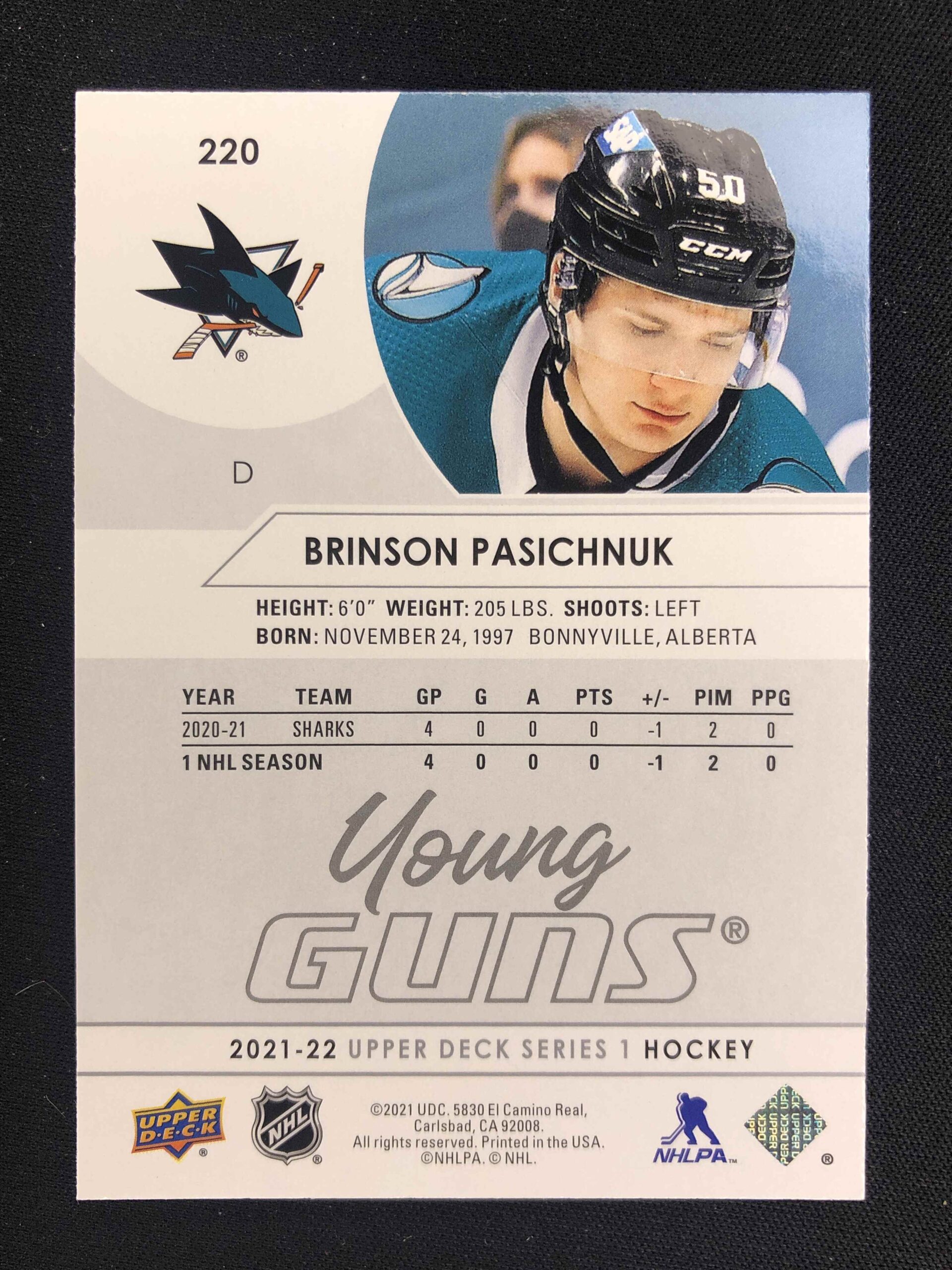 Sběratelská karta 2021/2022 Upper Deck Series 1 Young Guns 220 Brinson Pasichnuk Inzert