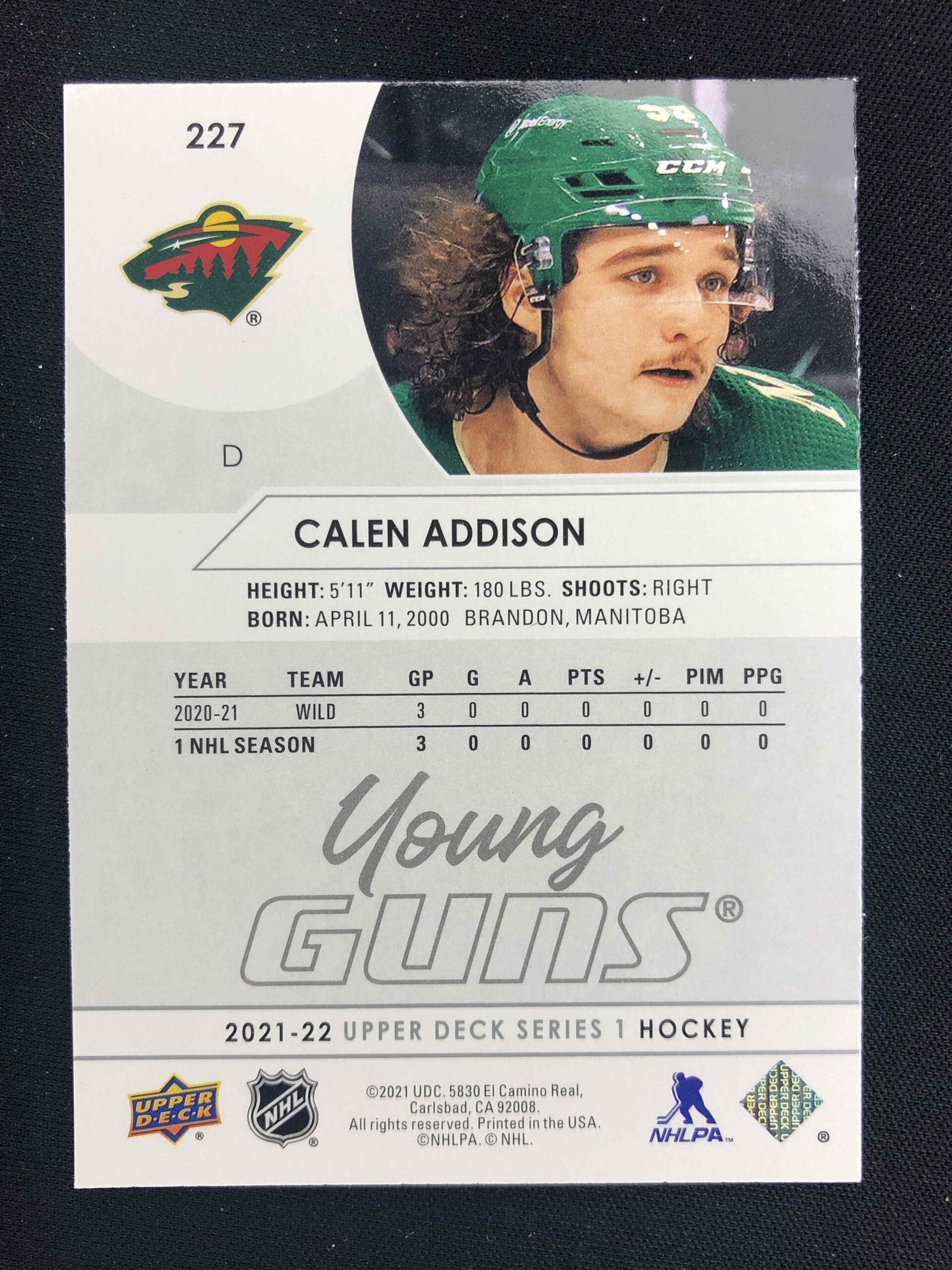 2021/2022 Upper Deck Series 1 Young Guns 227 Calen Addison Inzert