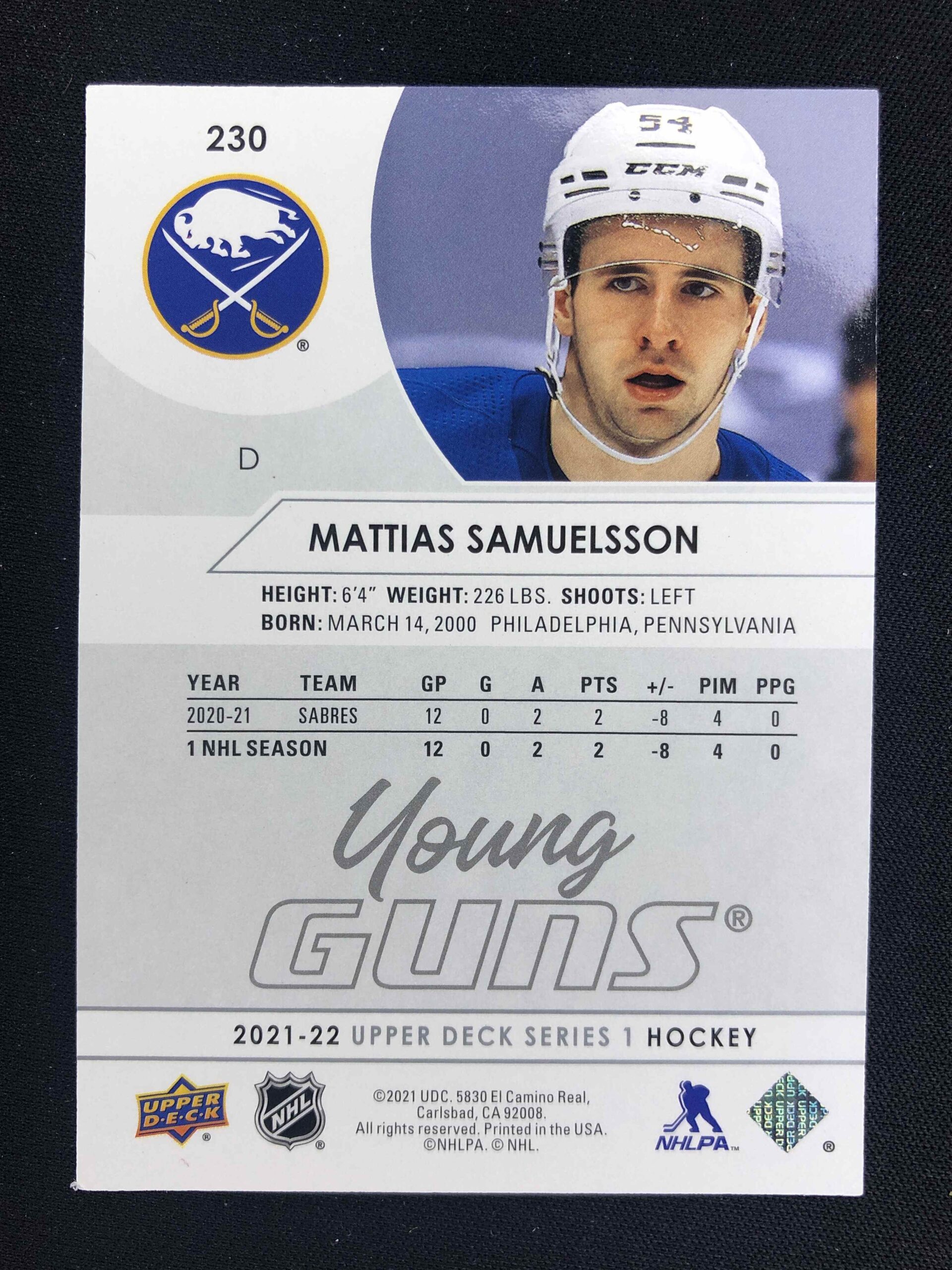 Sběratelská karta 2021/2022 Upper Deck Series 1 Young Guns 230 Mattias Samuelsson Inzert