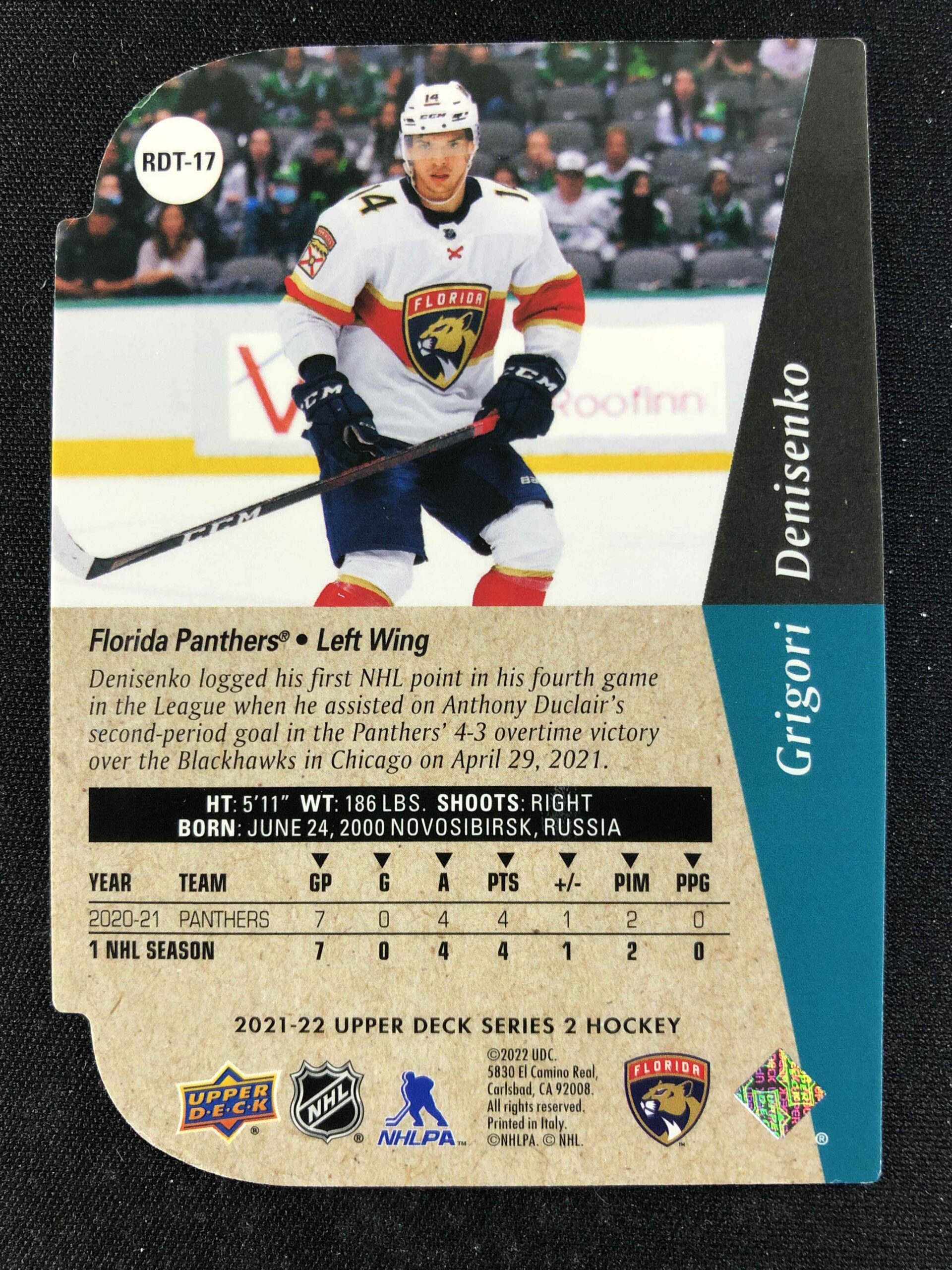 Sběratelská karta 2021/2022 Upper Deck Series 2 94/95 Rookie Tribute Die-Cuts RDT-17 Grigori Denisenko Inzert