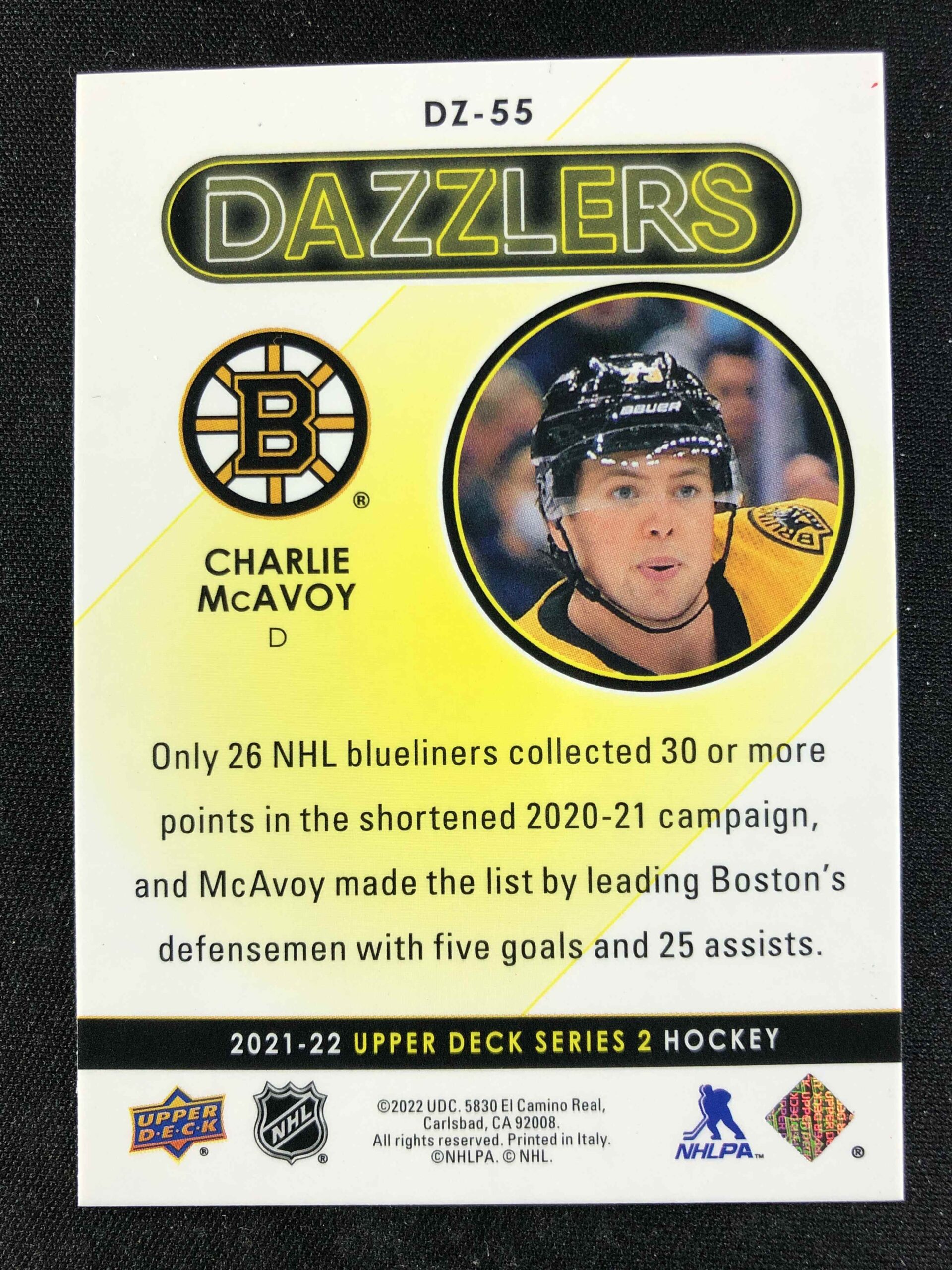 Sběratelská karta 2021/2022 Upper Deck Series 2 Dazzlers Green DZ-55 Charlie McAvoy Inzert