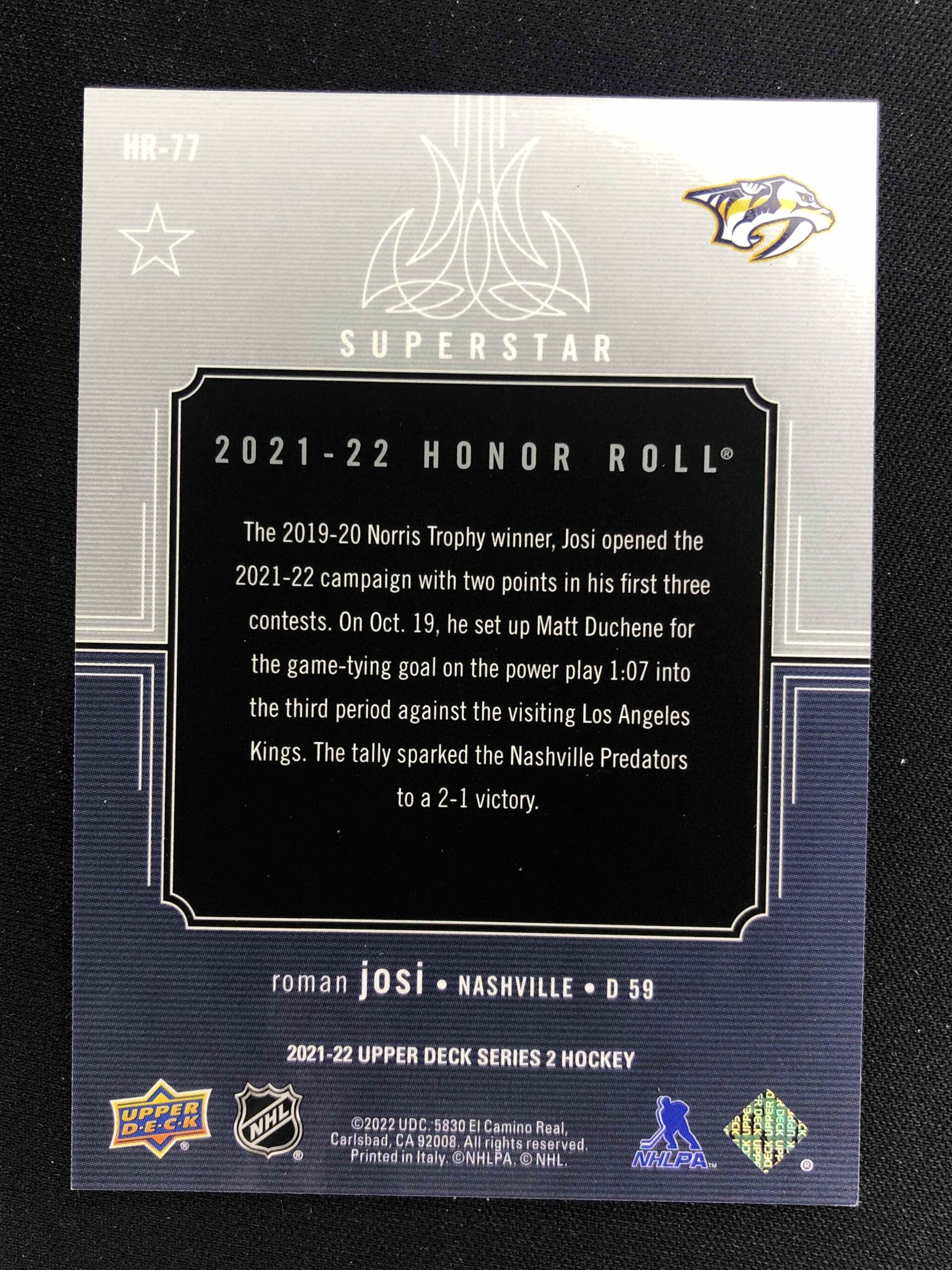 2021/2022 Upper Deck Series 2 Honor Roll HR-77 Roman Josi Inzert