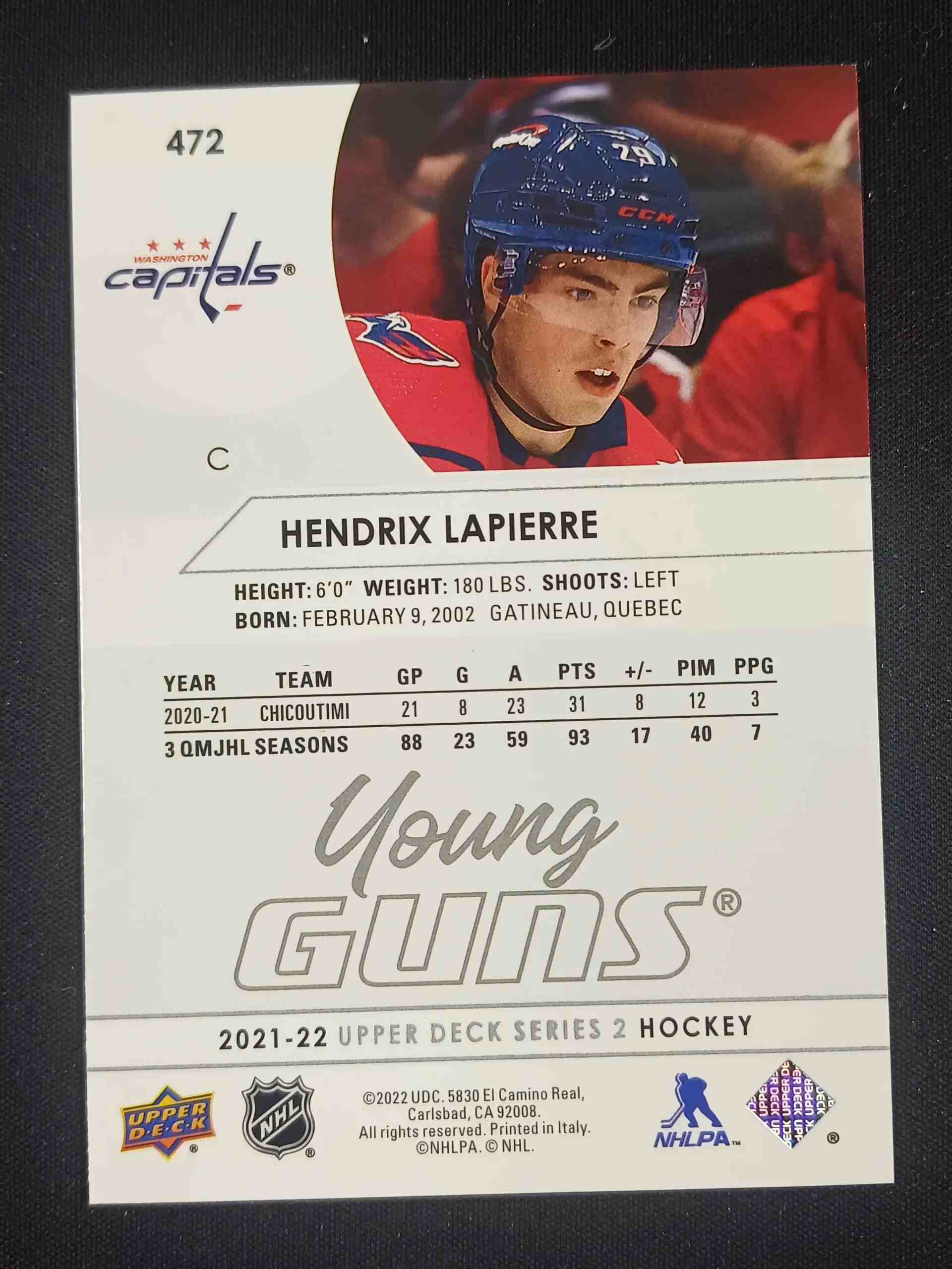 2021/2022 Upper Deck Series 2 Young Guns 472 Hendrix Lapierre Inzert